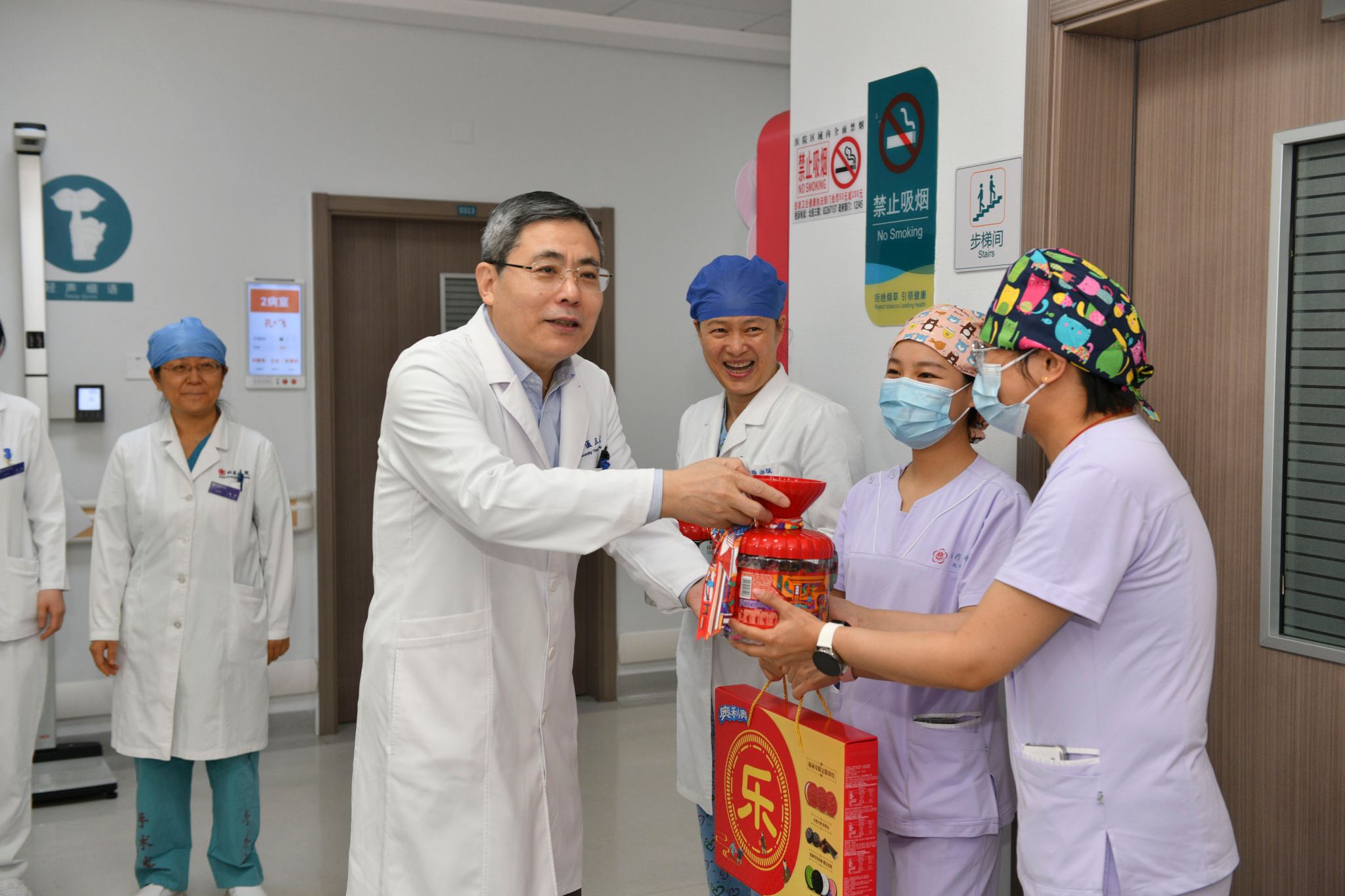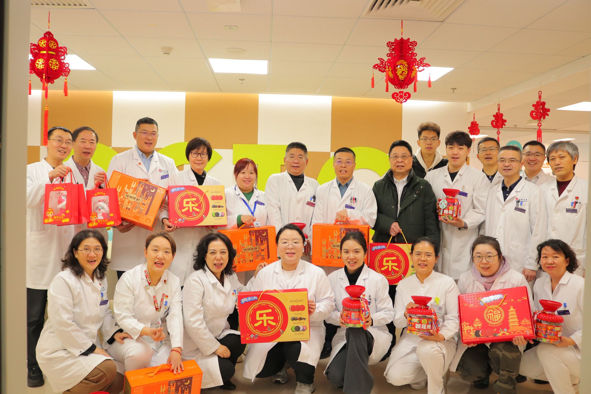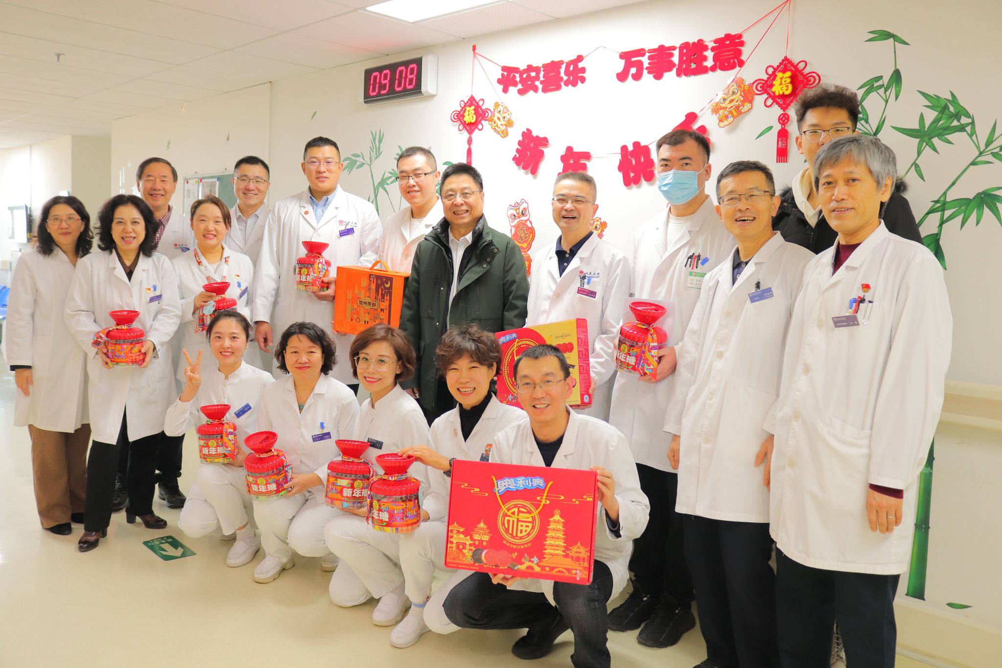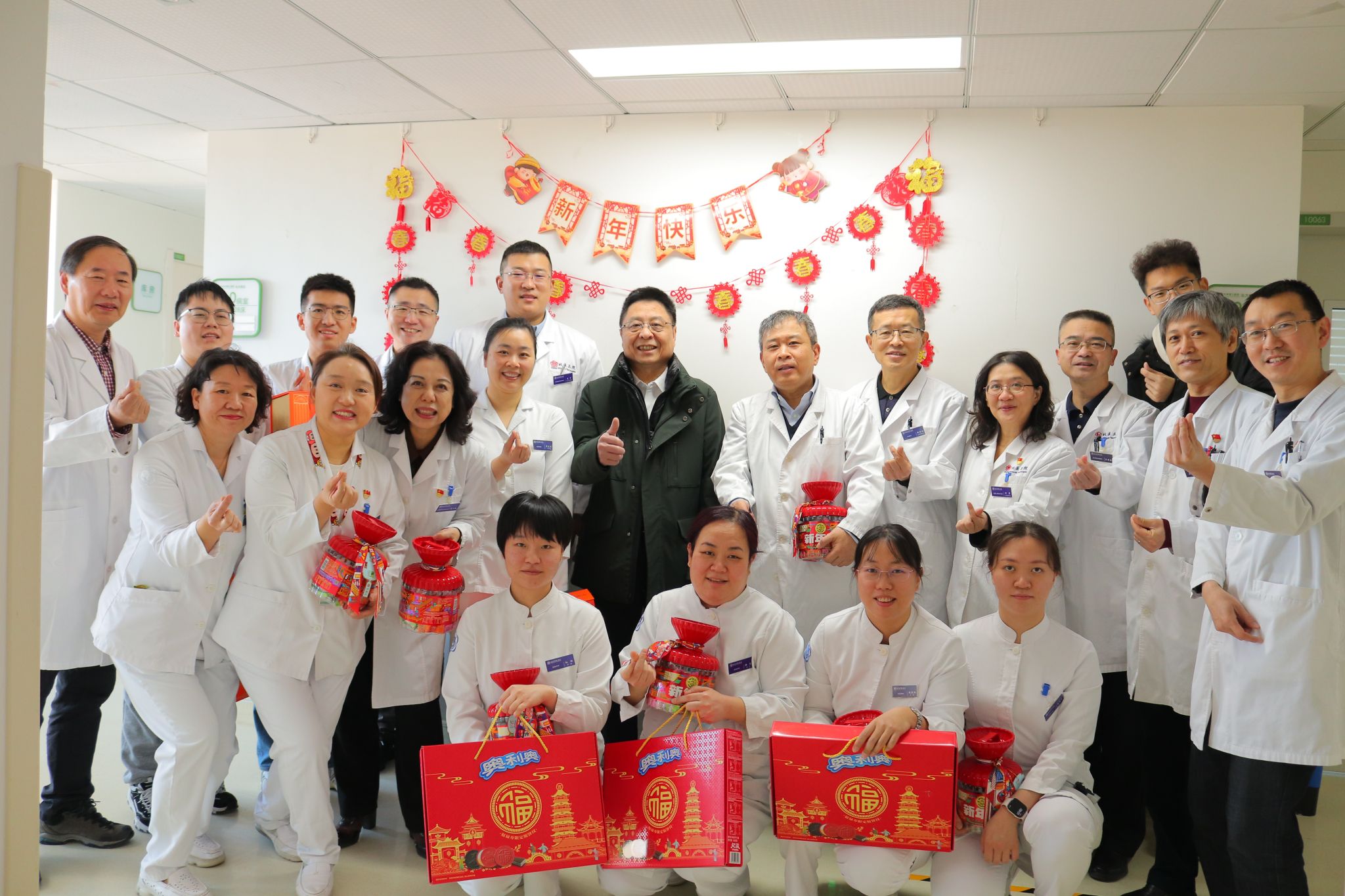 “新春快乐!祝愿大家阖家幸福,万事如意!”付卫院长一行还走访了危重医学科、产科国际医疗病房及肿瘤放疗科等地,详细了解了工作情况,与医护人员亲切握手,送上了真挚的新春祝福。