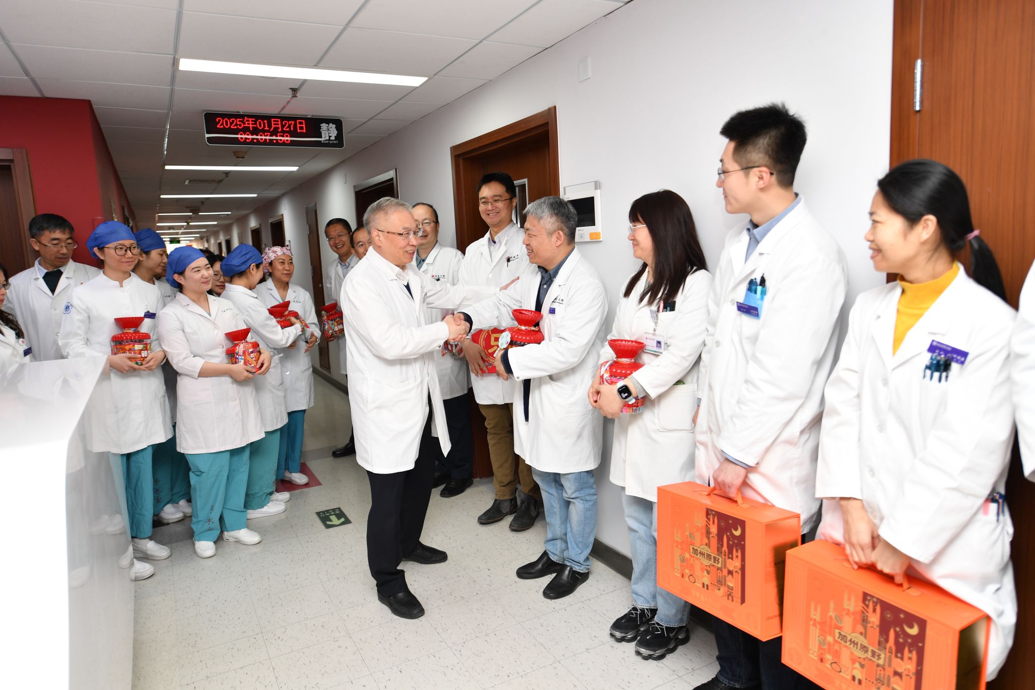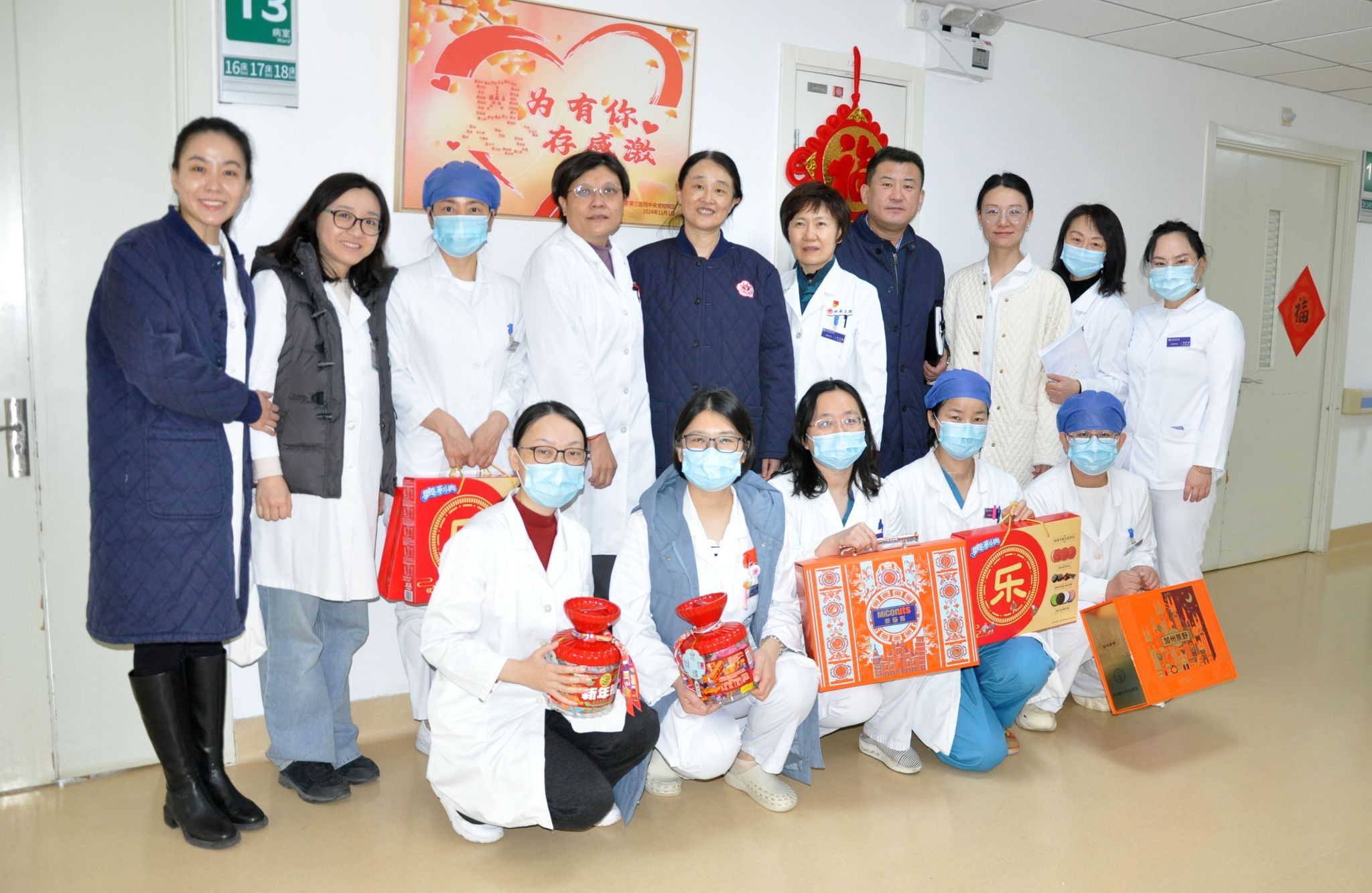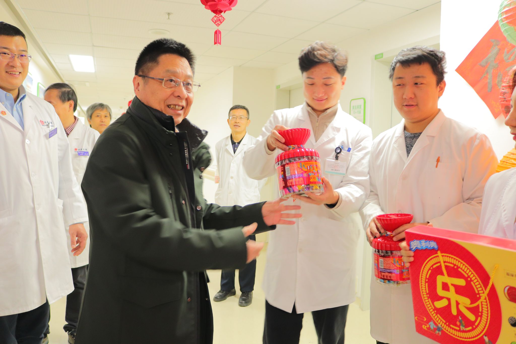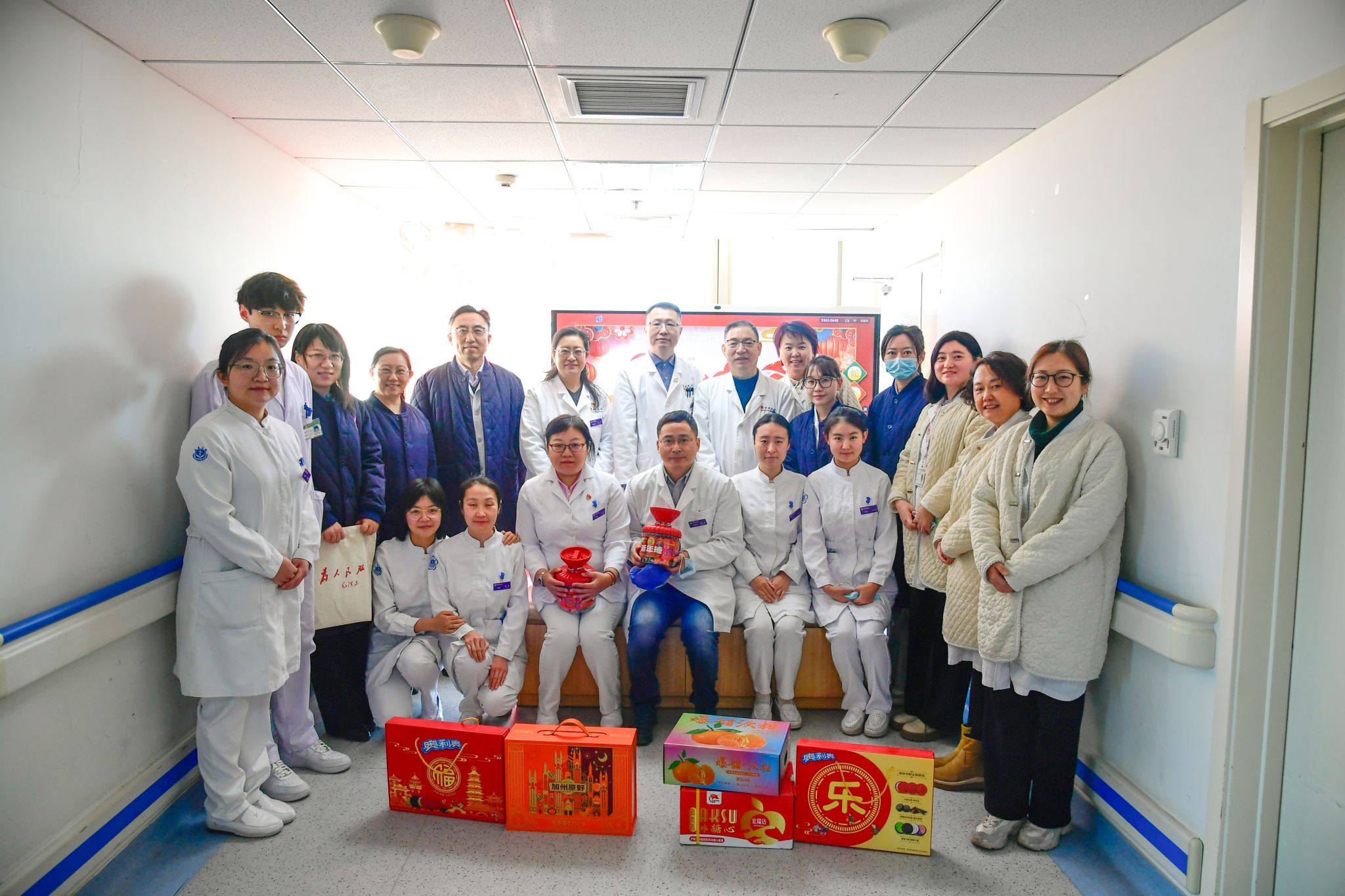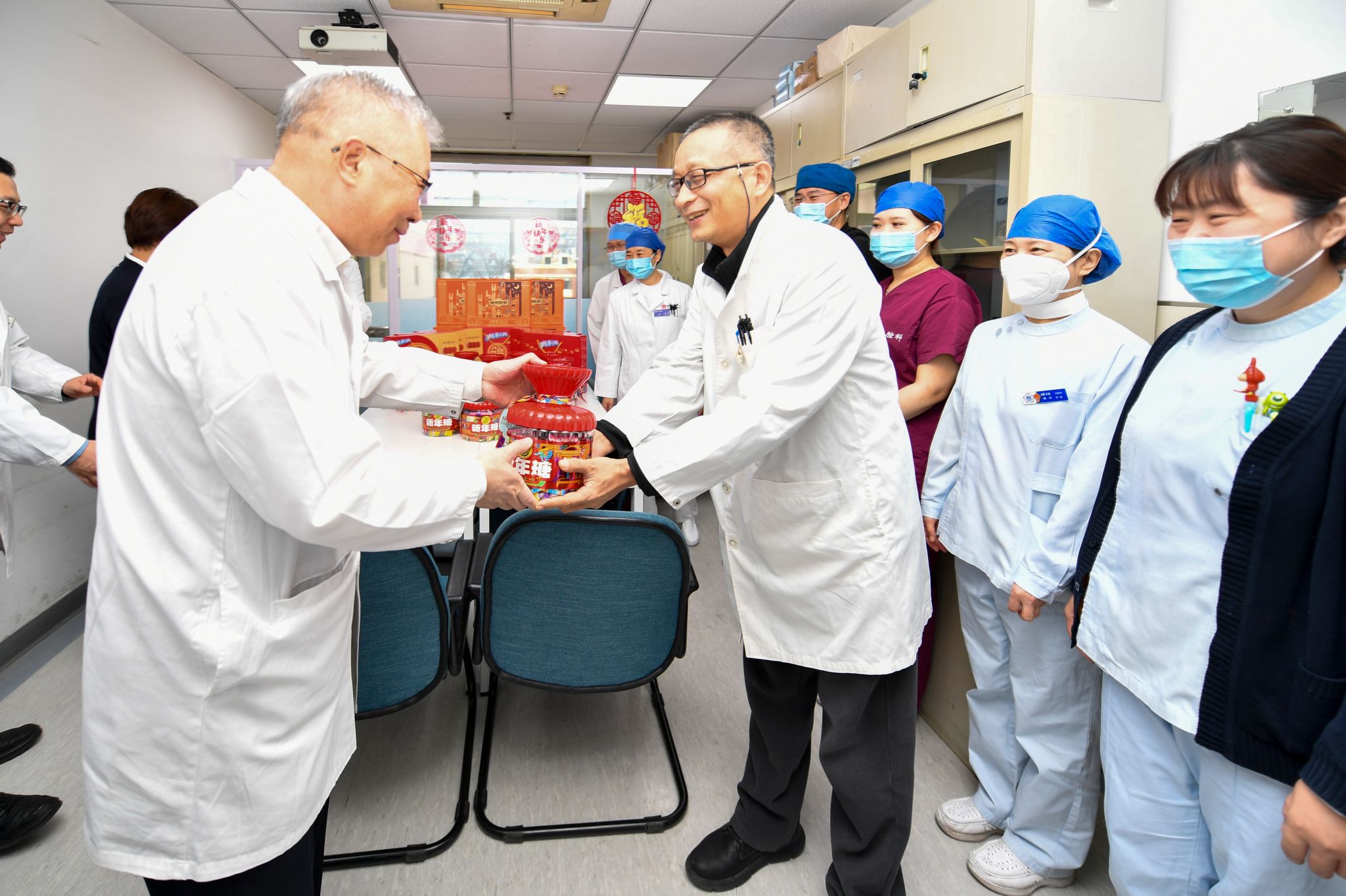 “新春快乐!祝愿大家阖家幸福,万事如意!”付卫院长一行还走访了危重医学科、产科国际医疗病房及肿瘤放疗科等地,详细了解了工作情况,与医护人员亲切握手,送上了真挚的新春祝福。