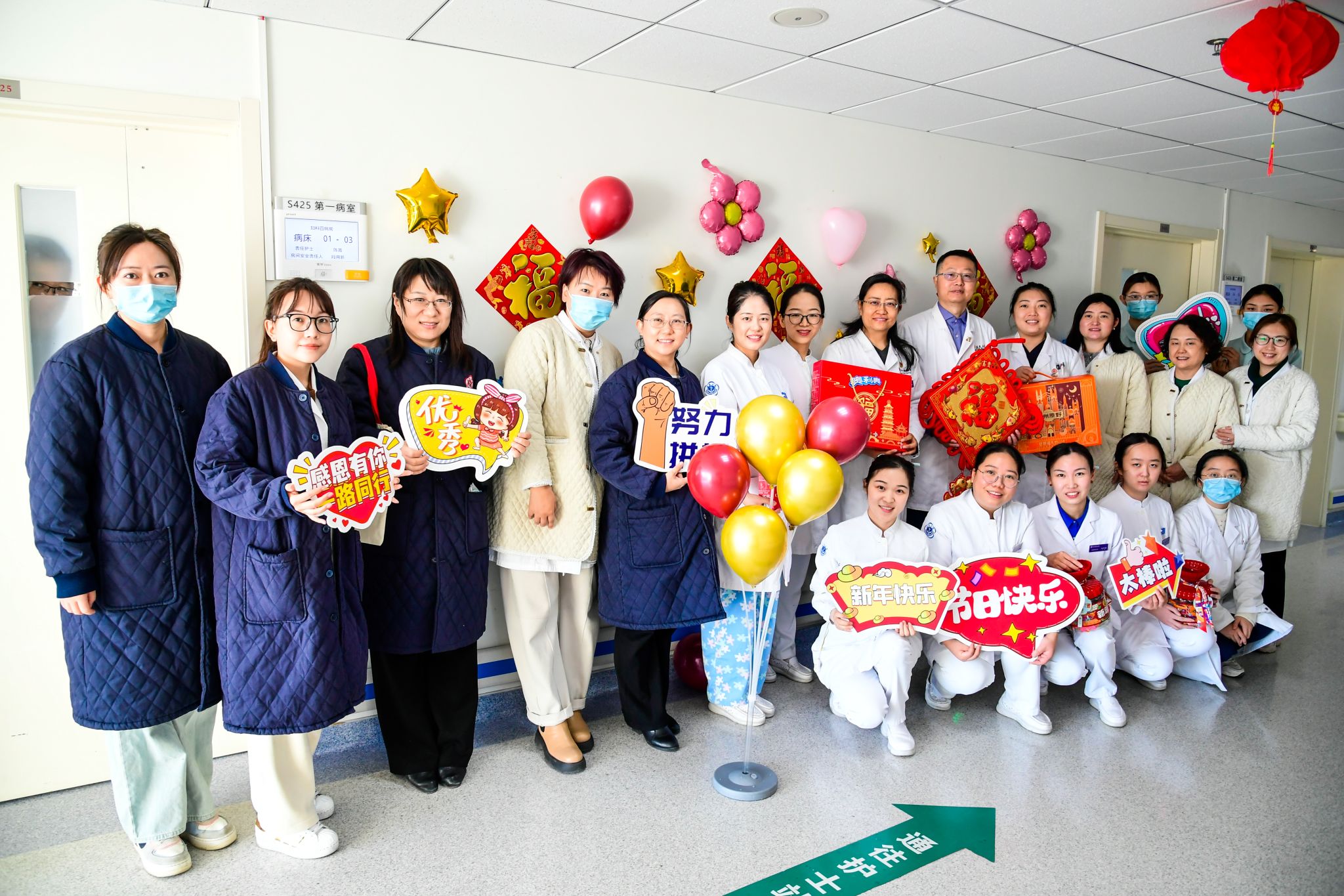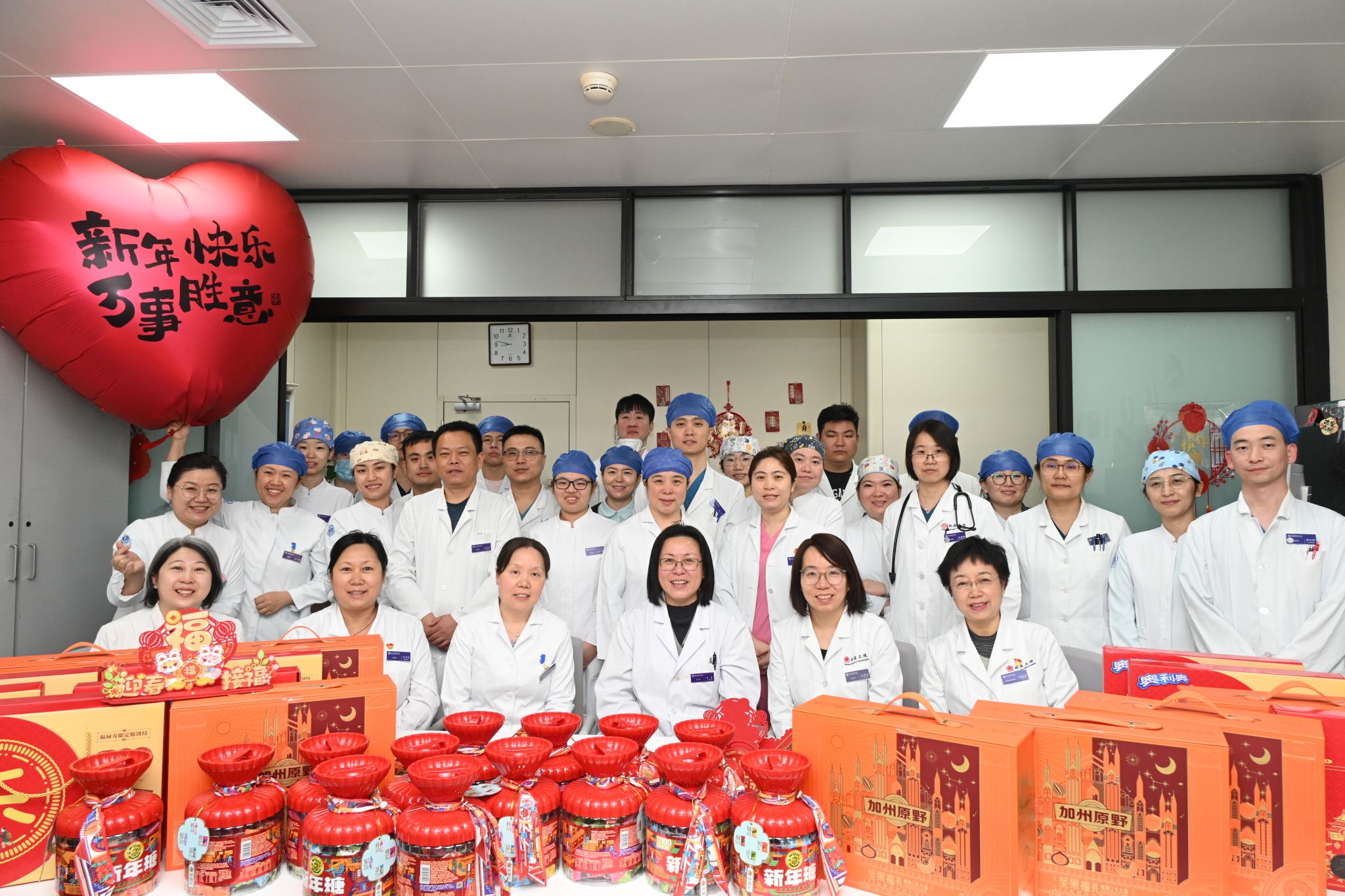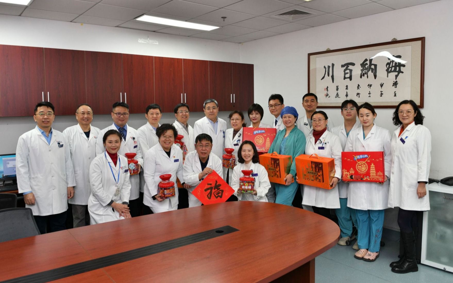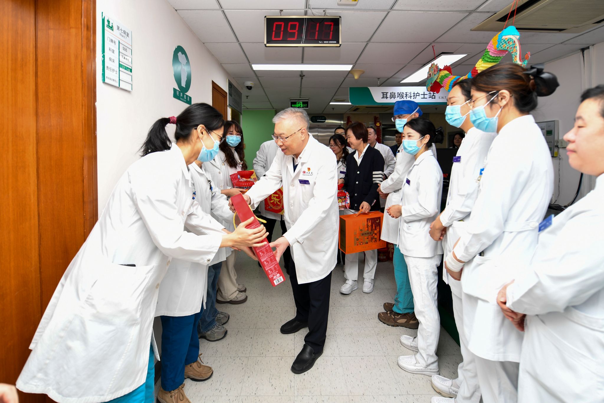 “新春快乐!祝愿大家阖家幸福,万事如意!”付卫院长一行还走访了危重医学科、产科国际医疗病房及肿瘤放疗科等地,详细了解了工作情况,与医护人员亲切握手,送上了真挚的新春祝福。