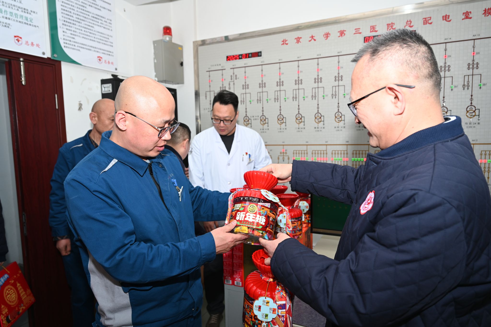 2025年1月27日,农历腊月二十八,新春佳节即将来临,医院内外装点一新,洋溢着浓郁的节日气氛。北京大学第三医院(北医三院)党委书记金昌晓、院长付卫等党政领导班子成员与相关部门负责人一起,分为8组前往一线临床医技科室、职能处室、分院区等40余处,进行走访慰问和行政查房,向医务人员致以新春的祝福和问候,并实地了解工作情况,确保春节期间医院平稳运行。
