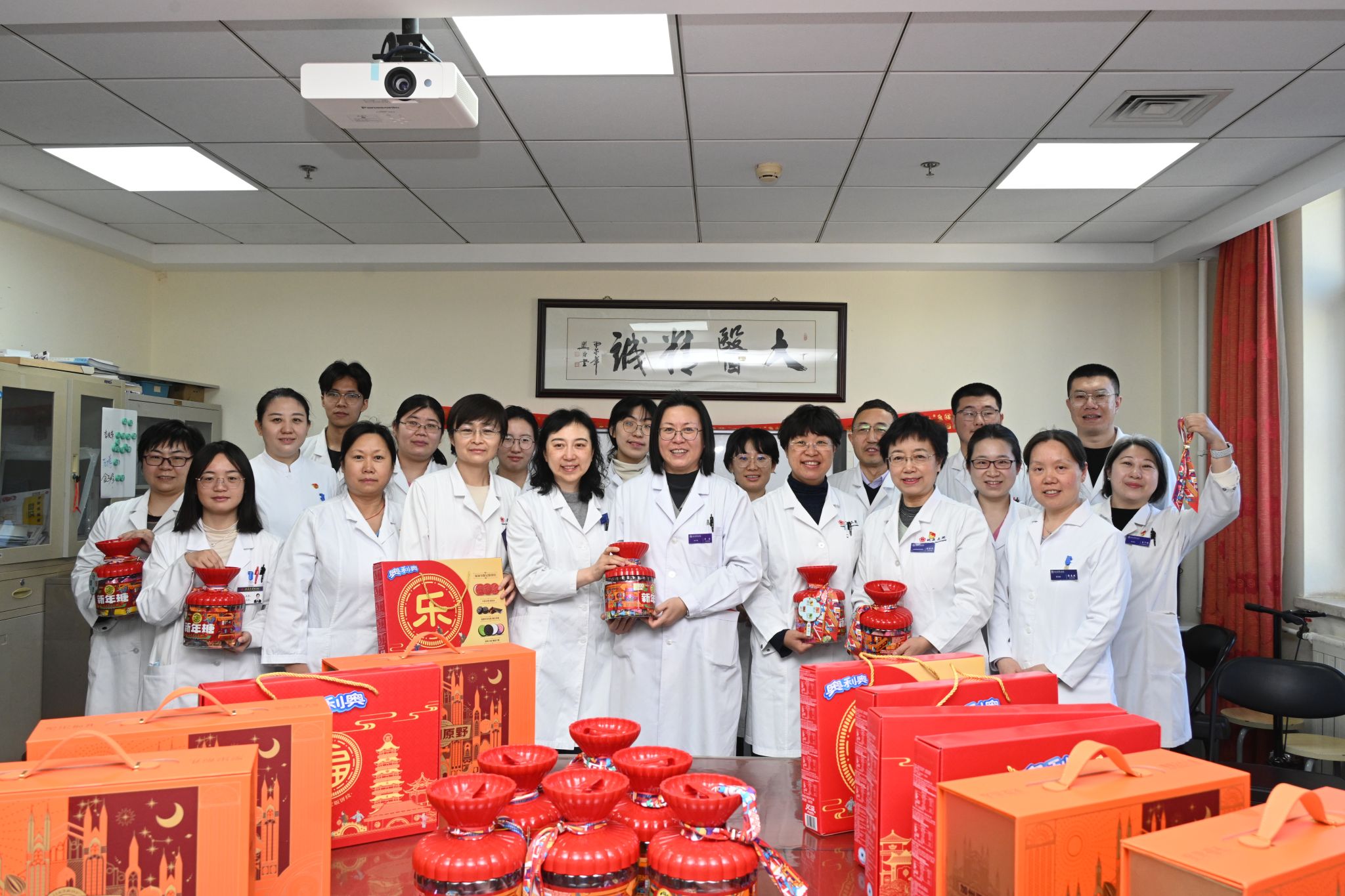副院长沈宁带队前往中央党校院区和第二门诊部。一行人来到中央党校院区老年内科三病房、安宁疗护特需病房、全科医学科一病房、康复医学科二病房、普通外科四病房,询问了在岗医务人员的工作情况以及患者情况,并祝大家新春快乐。在放射科、康复大厅,她对坚守岗位的医护人员表达了衷心的感谢,为大家送上了精心准备的新春慰问品。
