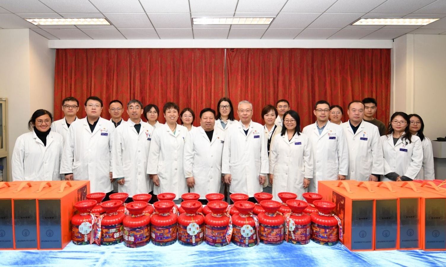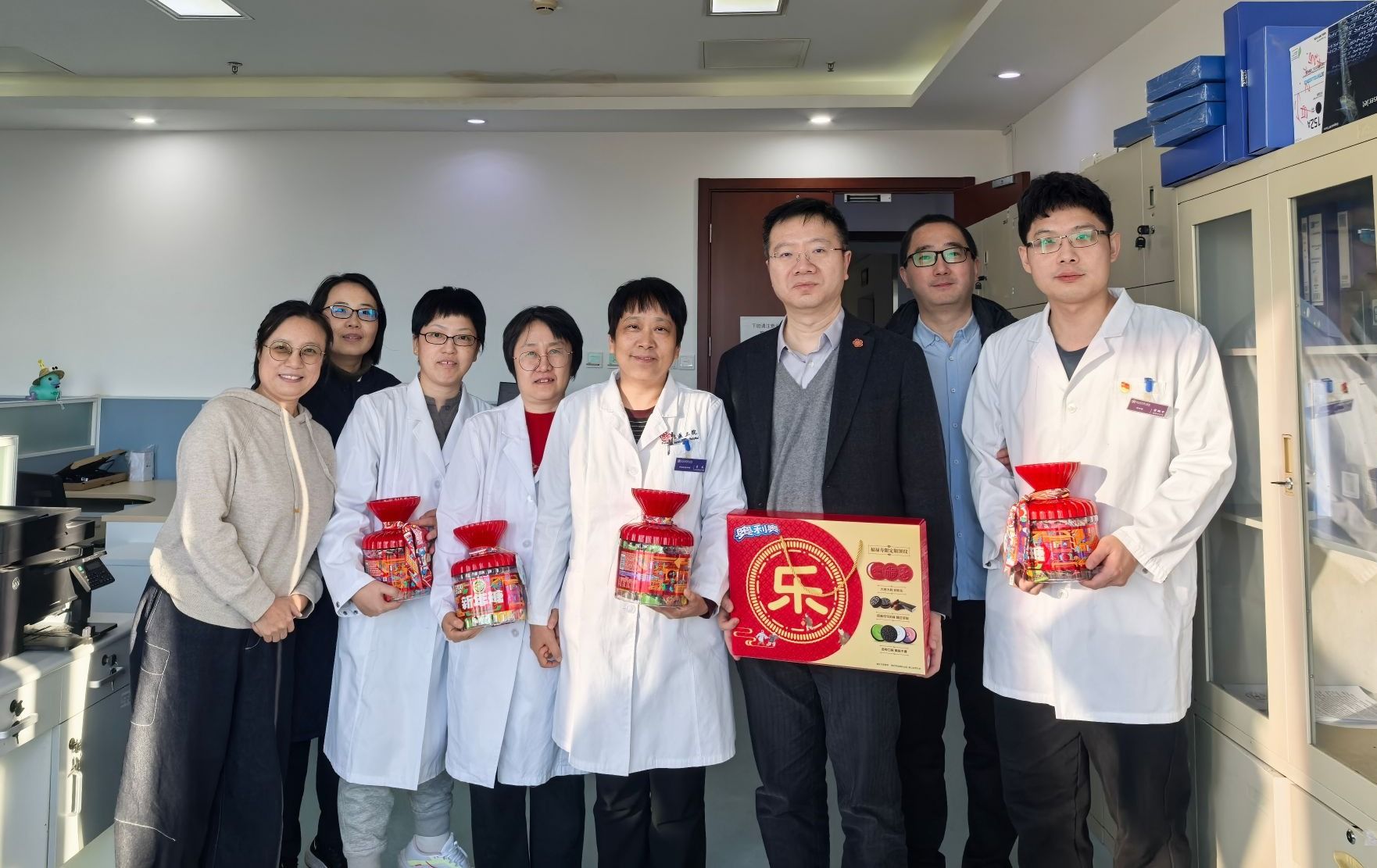 “大家辛苦了,新春快乐!”走进检验科,他对大家的辛苦付出表示感谢,并慰问在岗医务人员,送上精心准备的新春礼物。未来新院区运行,检验科的压力也会相应增加,他勉励大家继续坚持以患者为中心的原则,确保医疗质量安全。