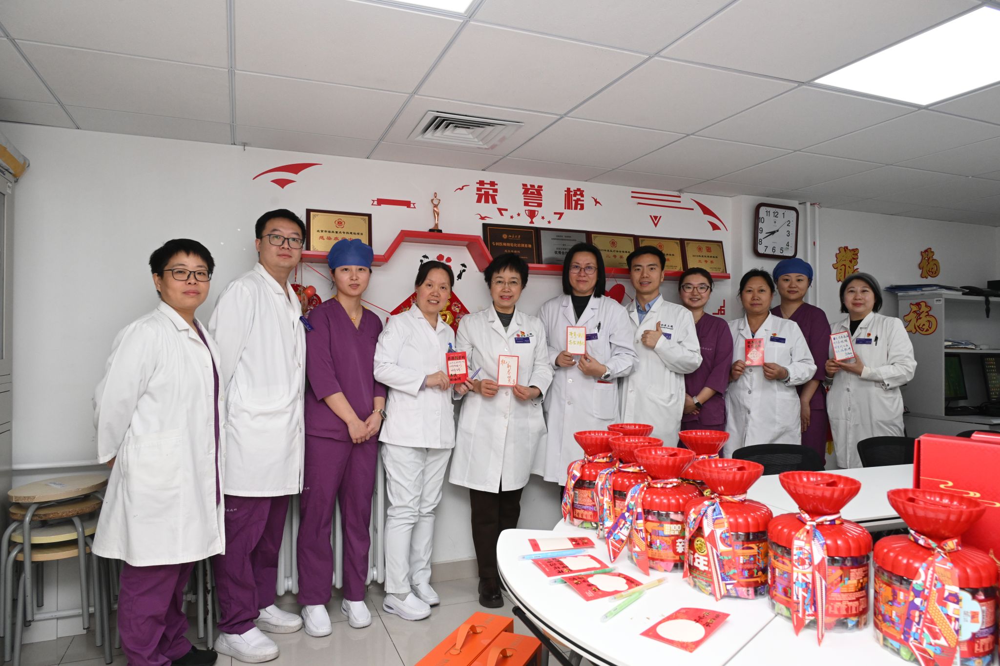 副院长李蓉率队来到感染疾病科,了解发热门诊运行情况,并共同写下新春祝福。“事事顺遂,家和万事兴”“福气满乾坤”这些承载着美好祝愿的贺卡,如同冬日暖阳,温暖人心。在急诊科、放射科,她向坚守岗位的医务人员致以最深的敬意,并问候并肩战斗的电梯引导员。正是有了他们的付出和努力,才让更多人能够享受到家庭的温暖和节日的快乐。在风湿免疫科病房、职业病科病房,她对大家一年来的辛勤付出表示感谢,祝愿医护兄弟姐妹蛇年大吉,共同迎接一个充满活力和幸福的新年。