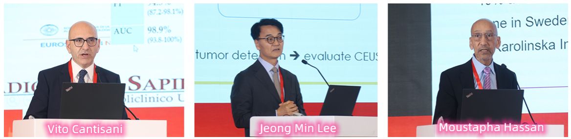 会议期间,国内外权威专家分享领域内前沿进展。来自意大利的Vito Cantisani教授、美国的刘吉斌教授、瑞典的Moustapha Hassan教授、法国的Jacques Souquet教授和韩国的Jeong Min Lee教授,分别就超声造影在肾脏病变诊断中的临床应用、治疗性超声的临床转化、纳米颗粒肿瘤诊疗技术等内容进行专题报告。