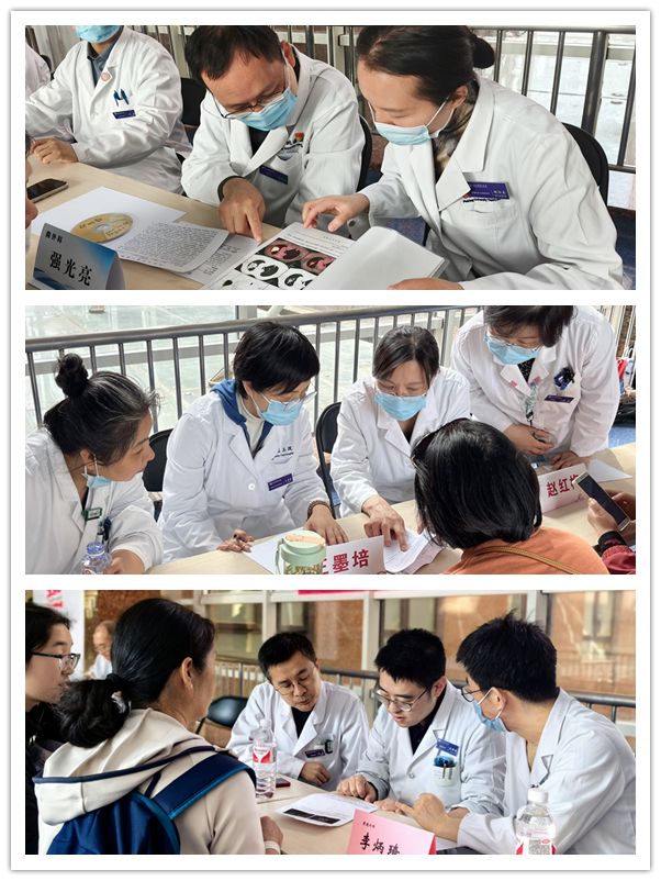 多场义诊中,数名病情疑难、复杂的肿瘤患者专程前来。MDT团队根据患者病情,结合以往检查检验结果,现场开展多学科会诊,不仅为患者制定多学科诊疗方案,还解答了患者对诊断和治疗相关的疑问。