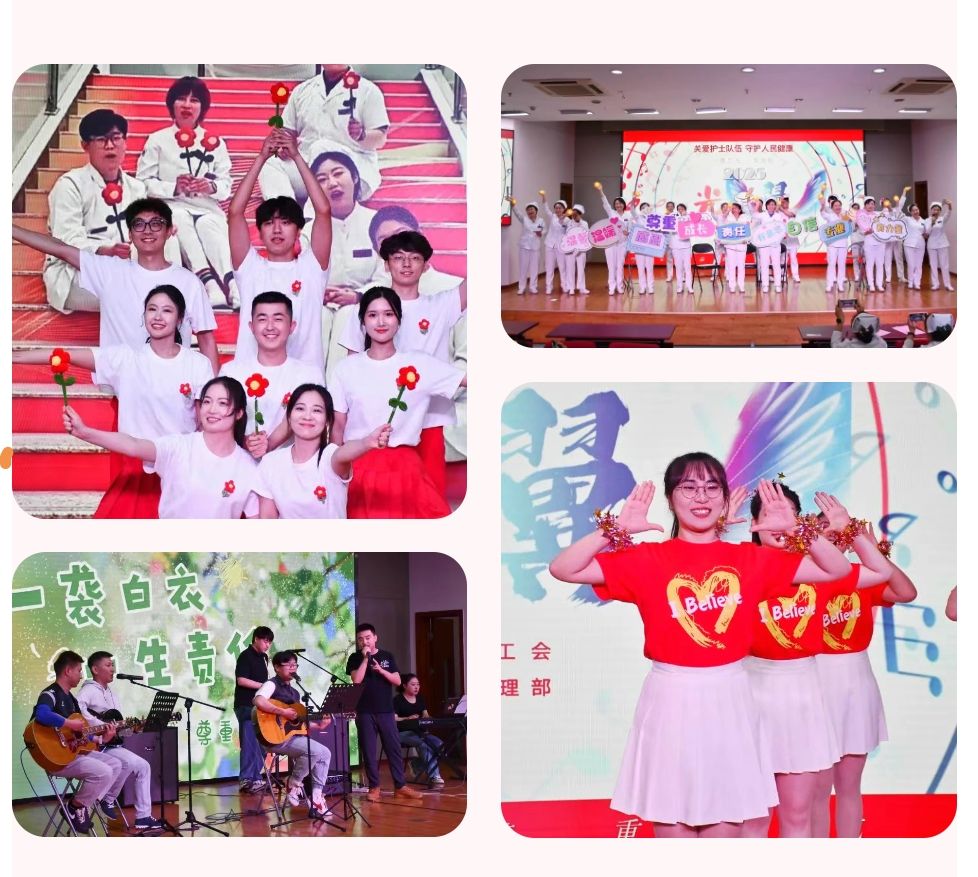 最后,“光之翼”文艺汇演为全院护士献上了一场精彩纷呈的演出。舞蹈表演《我相信》拉开序幕,三句半表演《我爱上班》别出心裁,古筝独奏《渔舟唱晚》《我爱你中国》,音符流淌间尽显艺术魅力;《用生命影响生命》朗诵,深情诠释护士职业的深刻内涵。大科护士长带来的小合唱《和你一样》宛如一股暖流,流淌在现场每一个人心中。护理管理团队携手花园北路49号乐队带来歌曲串烧《我是一只小小鸟》《我们的时光》《咖啡屋》《我们走在大路上》,彰显了护理团队勇往直前、无畏挑战的坚定信念,将文艺汇演的氛围推向又一高潮。