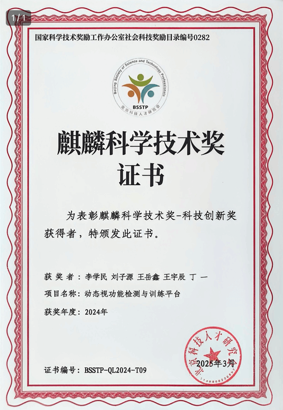 研究成果多次发表于Frontiers in Neuroscience,Journal of Eye Movement Research等杂志,主持并参与动态视觉相关国家级课题3项,牵头制定《动态视力临床检测指南(2025版)》。获授权发明专利7项、软件著作权2项,产品入选“2024眼科学中国十大原创进展”,已在北京大学第三医院等全国10家三甲医院落地应用,累计完成临床检测超万例。未来,团队将进一步整合VR/AR技术,构建更加沉浸式的训练场景,覆盖检测-诊断-训练-评估四大环节,并建立中国人动态视觉健康数据库,为个性化诊疗提供数据支持。