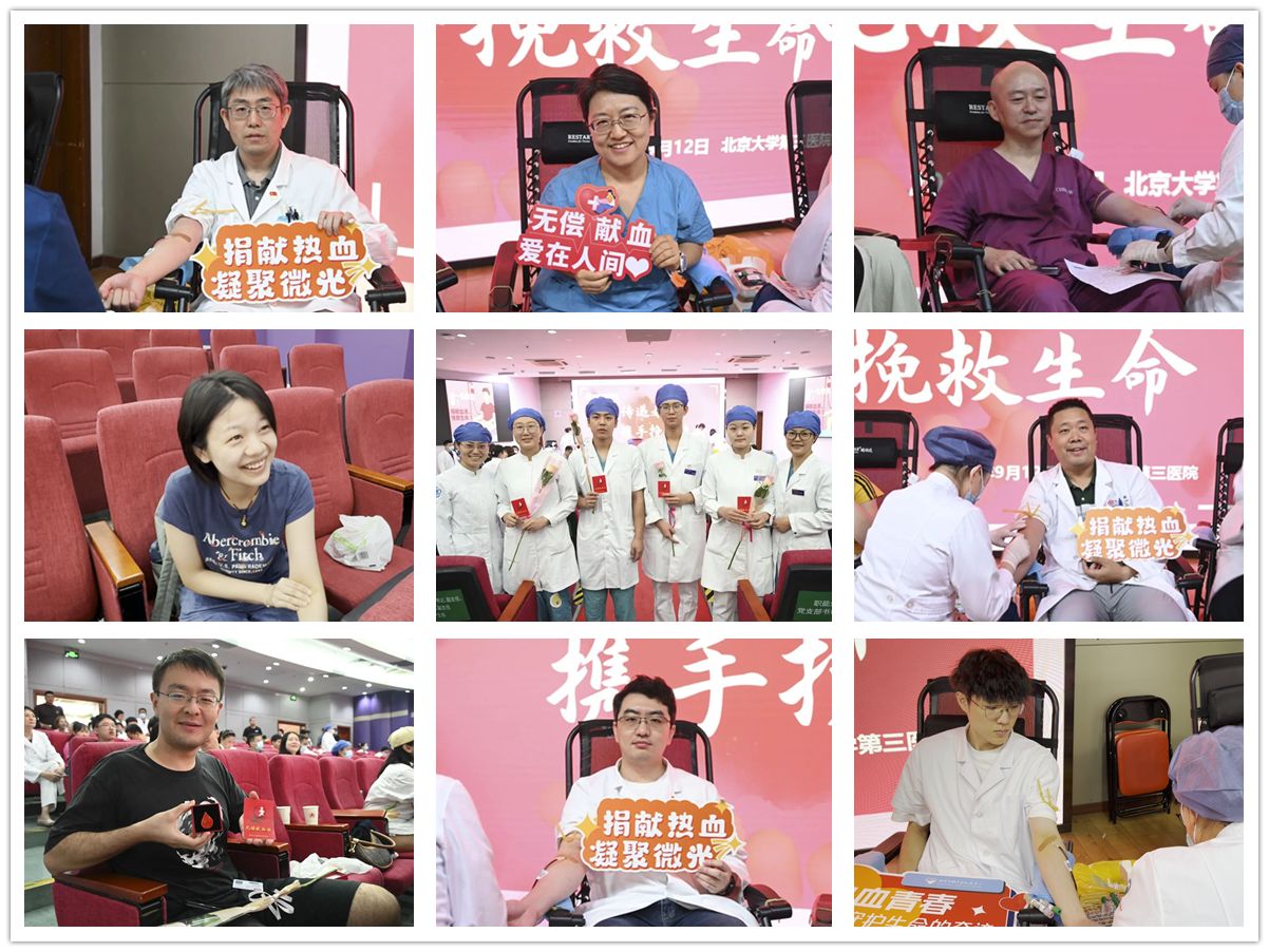 滴滴热血,传递着奉献的赤诚;脉脉温情,守护着生命的期盼。2025年9月12日上午,北医三院172名医务人员无偿献血37200毫升。此次献血活动得到了全院各科室、分院区医务人员的积极响应,大家踊跃报名,以实际行动守护生命,用滴滴热血生动诠释了“医者仁心”的深刻内涵。