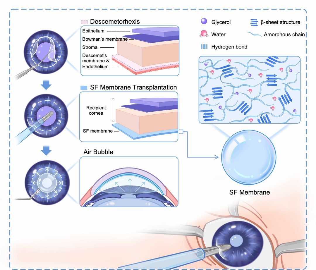 本研究是全球首个可降解生物来源的丝素材料应用于人工角膜内皮重建,突破了传统非降解材料的局限,为角膜内皮功能障碍提供了一种临时替代的创新治疗策略,具有重要的临床转化前景。