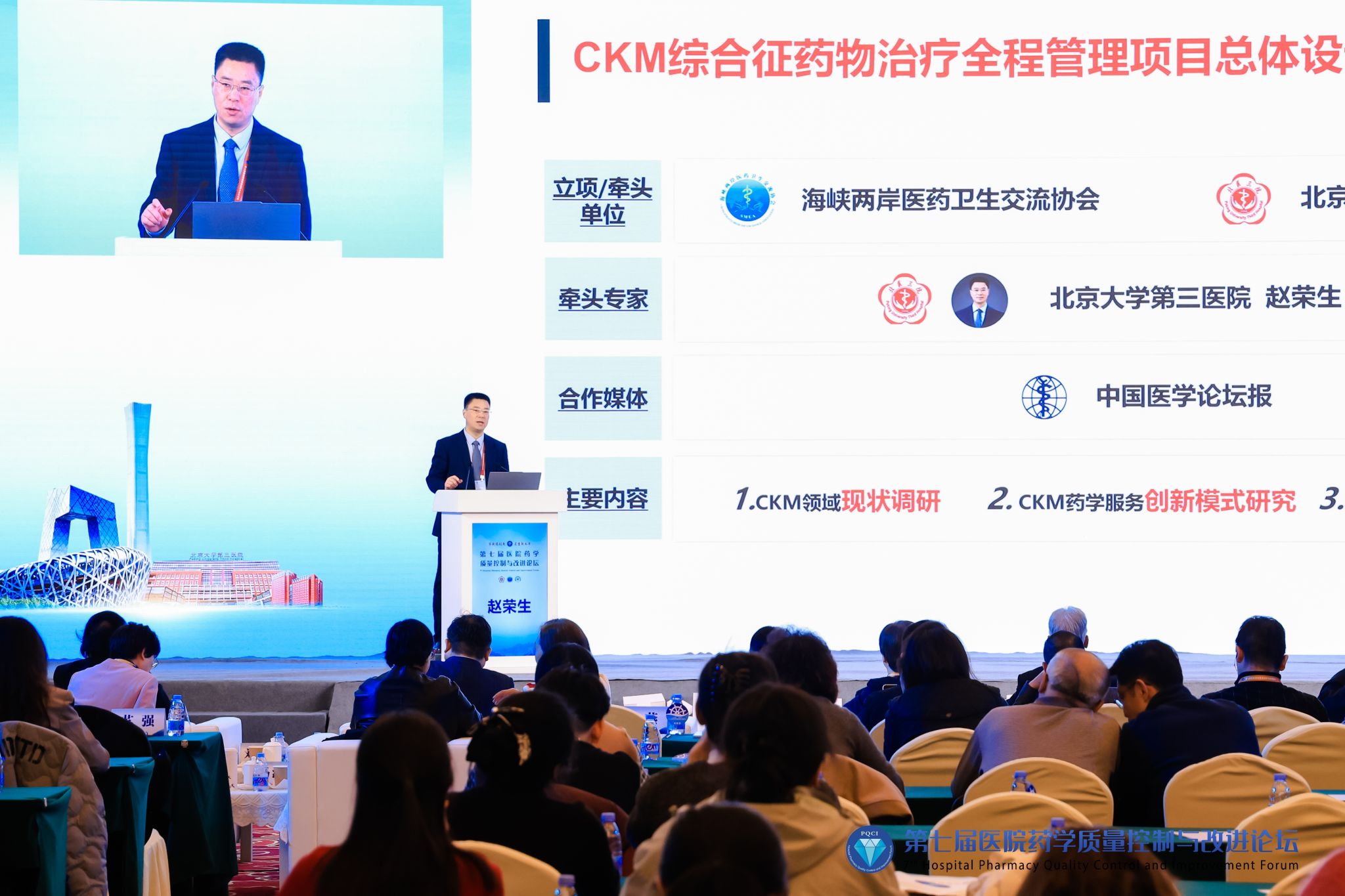2025年11月27日至29日,由北京大学第三医院、海峡两岸医药卫生交流协会(简称“海医会”)医院药学专业委员会联合主办,北京市药学质量控制和改进中心承办的第七届医院药学质量控制与改进论坛在北京举行。论坛主席、北医三院药学部主任赵荣生教授致欢迎辞。北医三院党委书记金昌晓、海医会会长王立基、海医会医院药学专业委员会主任委员张伶俐等出席开幕式并致辞。来自全国20余个省份的400余名医院药学领域专家及药师参加。