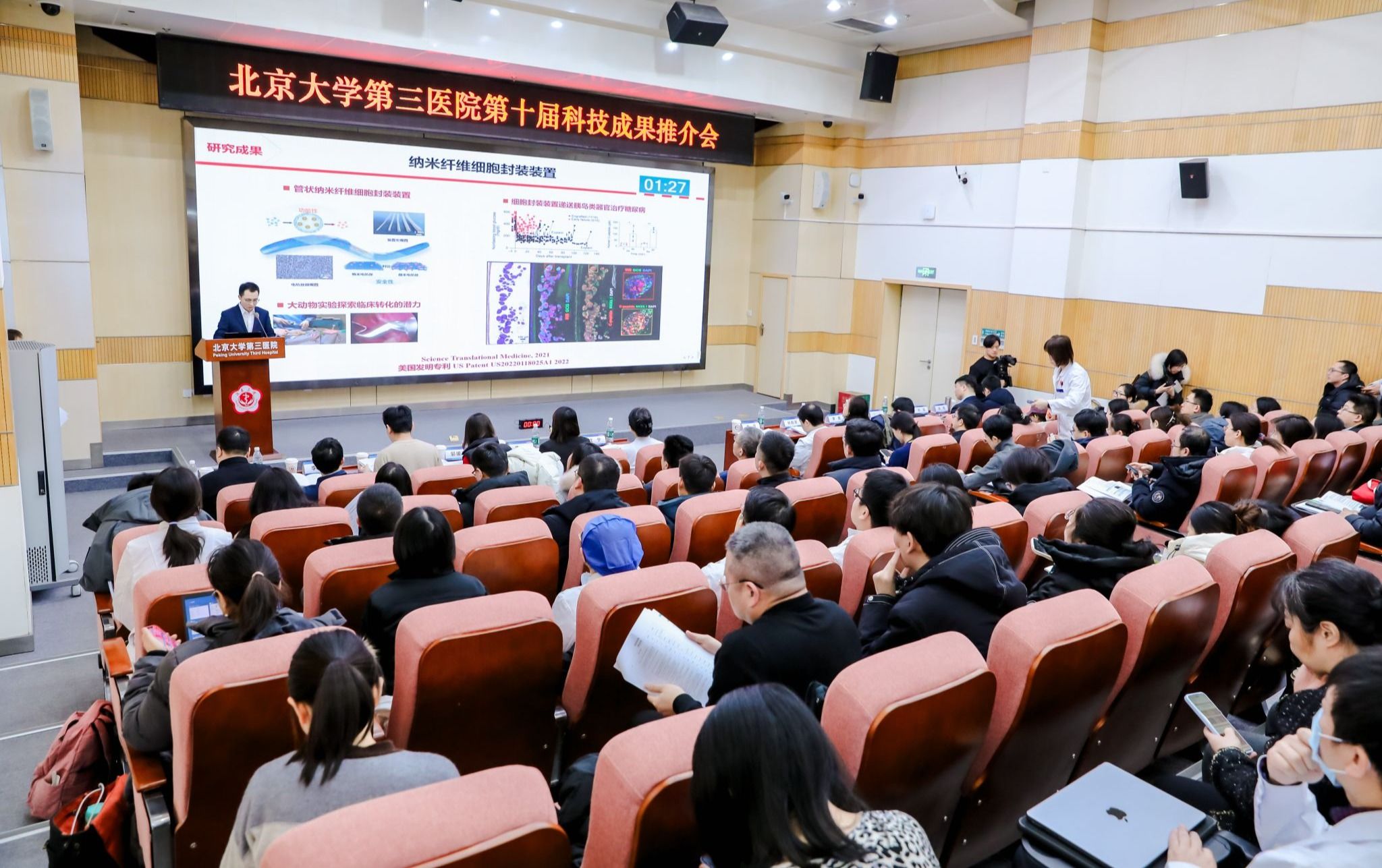 2026年1月20日,北京大学第三医院第十届科技成果推介会在健康医学中心楼举行。河北省医保局,北京市中关村、密云区、顺义区、经开区、大兴区、通州区、朝阳区等相关产业园区领导,北京、河北、福建、广东、四川、河南、山东等企业、投资机构、孵化器等130余家单位共200余人次参会。北医三院党委书记金昌晓,副院长沈宁、唐熠达,党委副书记、科技成果转化办公室主任姜雪等出席。