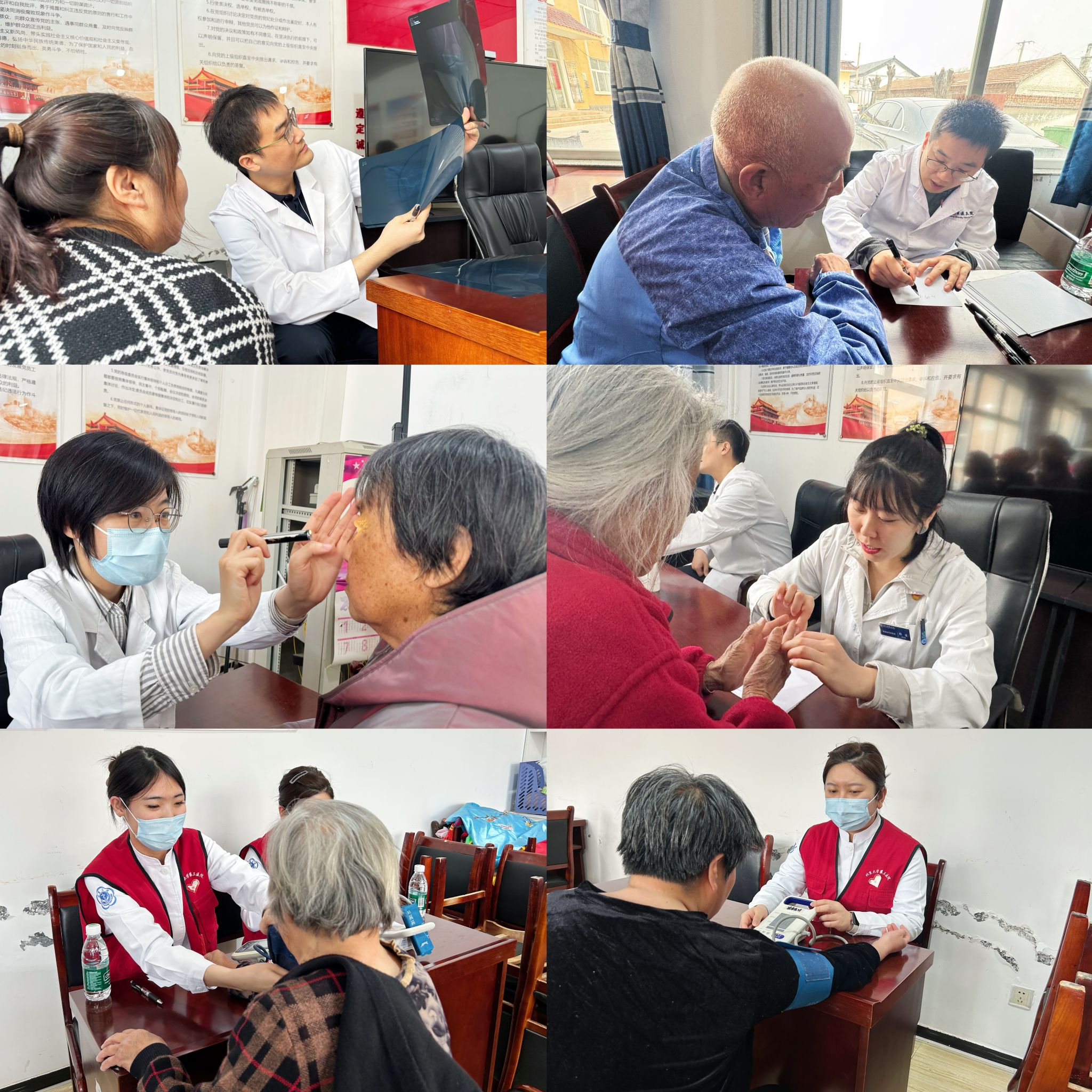当天上午,志愿服务队首先来到延庆区八达岭镇大浮坨村开展义诊活动。针对当地留守老人较多、群众就医不便情况,来自医院骨科、运动医学科、神经外科、眼科、心血管内科等科室的青年骨干为村民提供诊疗服务。志愿者们耐心问诊、仔细查体,针对高血压、糖尿病、骨关节病等常见慢性病进行专业指导,并结合村民身体状况给出个性化的治疗和用药建议。同时,通过通俗易懂的讲解,向村民普及慢病防治、春季保健及合理膳食等健康知识,引导村民树立“每个人是自己健康第一责任人”的理念。活动还提供了免费量血压、心肺听诊、眼底筛查等多项服务。近两小时的义诊累计服务村民80余人次,免费测量血压60余人次。专业的技术和周到的服务得到了村民一致好评。