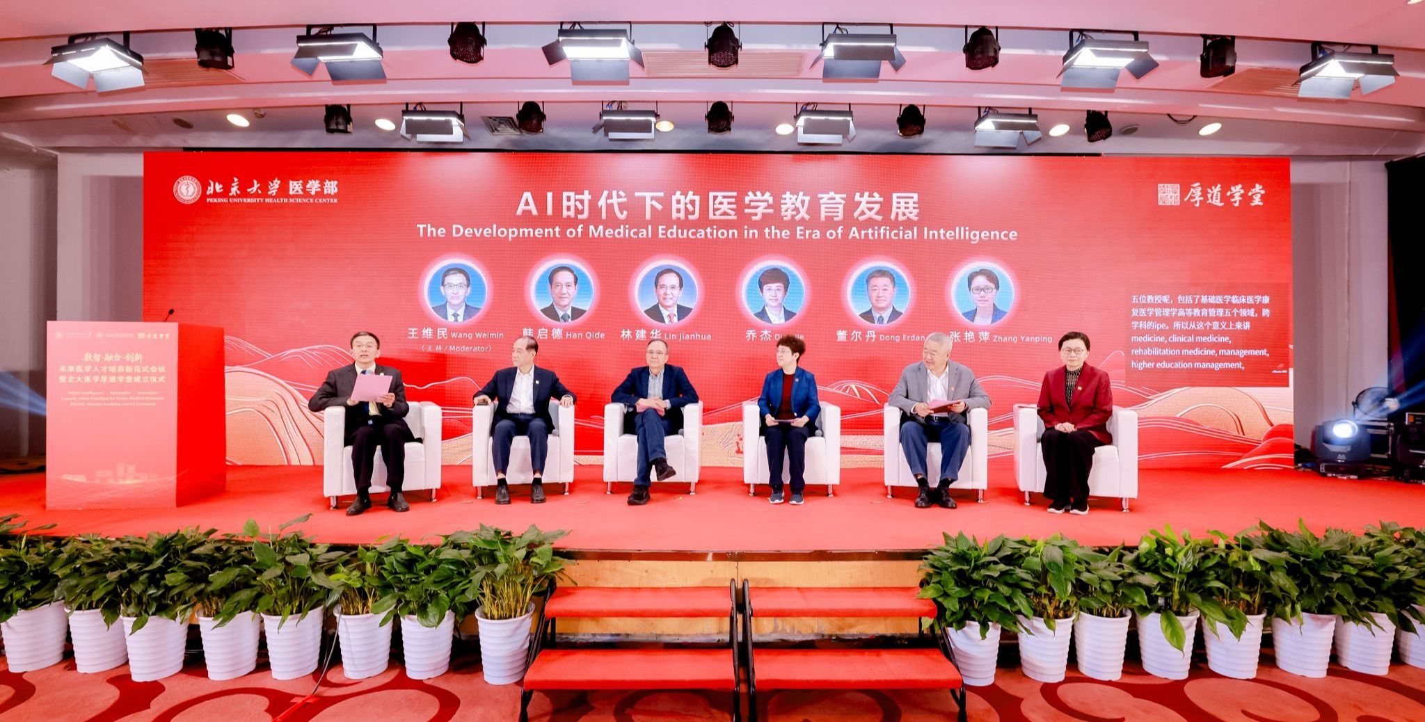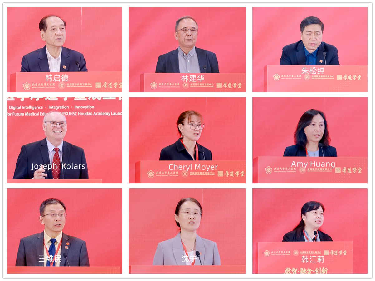 中国科学技术协会名誉主席韩启德院士,中国高等教育学会会长、教育部医学教育专家委员会主任委员林蕙青,教育部高等教育司副司长高斌,国家卫生健康委科技教育司医学教育处处长王波,教育部高等教育司农林医药处处长夏韶华,北京大学原校长、未来教育管理研究中心主任林建华,北京大学医学部主任乔杰院士,北京大学心血管研究所所长、康复大学校长董尔丹院士,全球知名人工智能专家、北京通用人工智能研究院院长朱松纯,密歇根大学医学院全球合作战略发展主任Joseph C. Kolars,密歇根大学学习健康科学系副主任Cheryl Moyer,密歇根大学全球健康拓展与合作中心亚洲项目主任Amy Huang,国家开放大学党委书记、校长王启明,上海交通大学党委副书记、医学院党委书记张艳萍,山西医科大学党委书记刘江平,北京航空航天大学副校长吴江浩,哈尔滨医科大学副校长许超千,全国医学教育发展中心常务副主任、北京大学医学教育研究所所长王维民,北京大学医学部副主任、北医三院副院长唐熠达,北医三院院长付卫、党委副书记姜雪、副院长沈宁等领导和嘉宾出席。