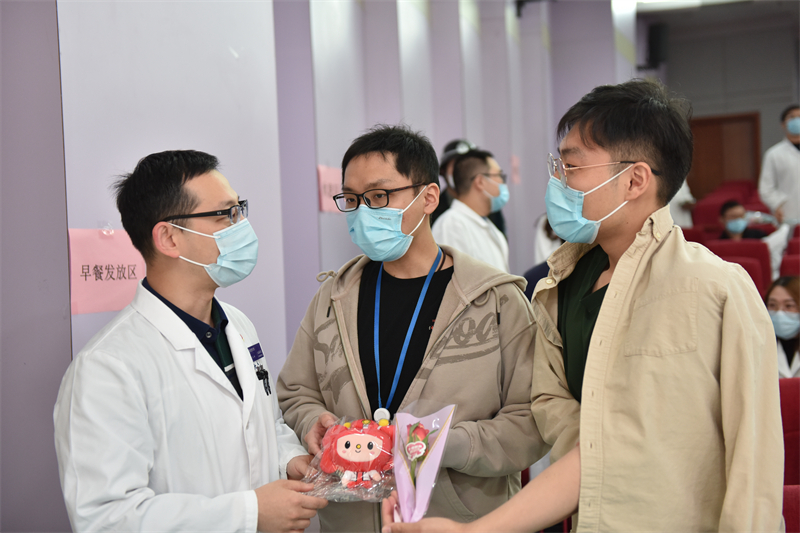 北医三院院长、党委副书记付卫,工会常务副主席刘温文来到献血活动现场,慰问献血的医务人员,为大家送上鲜花、食品、红糖水等,嘱咐他们好好休息,并感谢他们付出的热血和爱心。