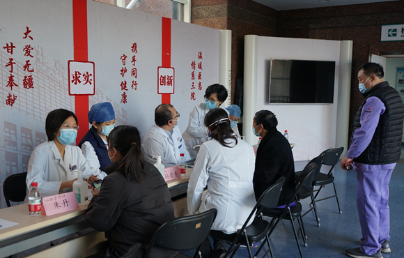 为呼吁公众关注罕见病群体,我院举办全天线上、线下罕见病日义诊活动。线下义诊在门诊二层走廊处进行,来自产科、心血管内科、骨科、眼科、肿瘤化疗与放射病科、呼吸与危重症医学科、血液内科等科室的10支罕见病诊疗团队、11名专家为患者及百姓提供了免费问诊和咨询服务。各学科专家对前来咨询者进行了耐心细致的问诊和宣教。来自23支罕见病诊疗团队,涉及19个科室41名专家参与了线上义诊,为线上的患者提供免费专家咨询服务。