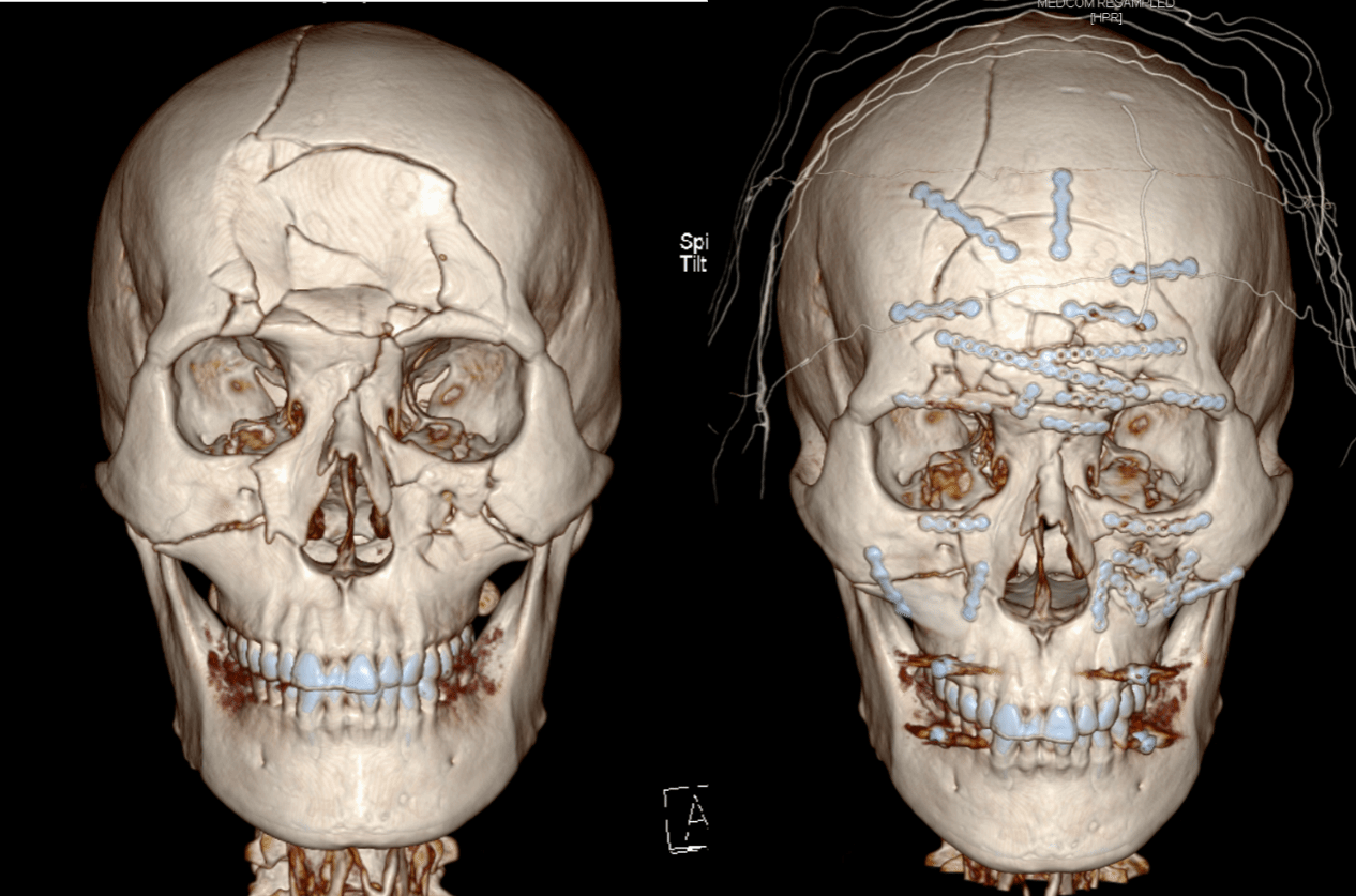 提起成形科,人们首先想到的往往是有神的眼睛、高挺的鼻梁、精致的脸庞、优雅的曲线……但实际上,成形科有很大一部分工作是修复重建,来恢复由外伤、肿瘤等因素引起的功能和形态缺陷。北医三院成形科近期接诊了多位由严重外伤导致的复杂性颅颌面粉碎骨折的患者。