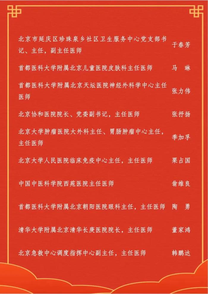 为深入贯彻落实党的二十大和二十届二中、三中全会精神,大力弘扬崇高职业精神,营造全社会尊医重卫的良好氛围,经单位推荐、行业初评、评委会终评,最终确定张抒扬等10人被评为第九届“首都十大健康卫士”,同时,郭维琴等20人获得第九届“首都十大健康卫士”提名。