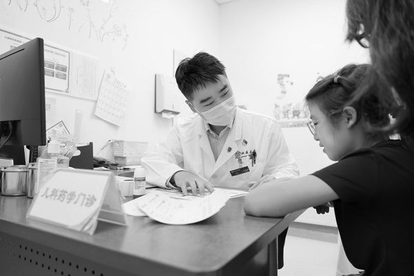 图2:北京大学第三医院药学部主管药师周鹏翔在出儿科药学门诊。