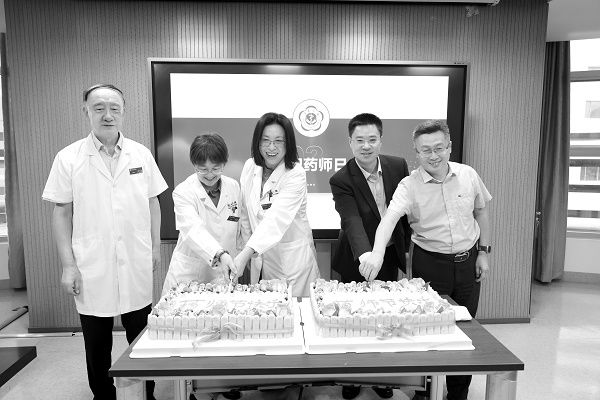 图1:北京大学第三医院药学部以切蛋糕的形式庆祝自己的节日。