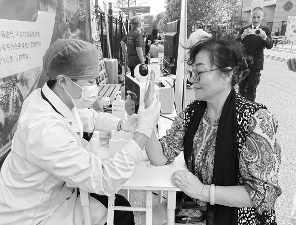 74岁的杨阿姨住在北京市昌平区金手杖养老公寓。虽然杨阿姨腿脚利落、精神矍铄,但她其实是一名高血压、糖尿病患者。得知有药师团队来家门口义诊,可把杨阿姨高兴坏了。量血压、测血糖、检查骨密度、咨询口腔问题……整个下午,杨阿姨都迈着轻快的脚步穿梭在临时搭建的义诊咨询台间。