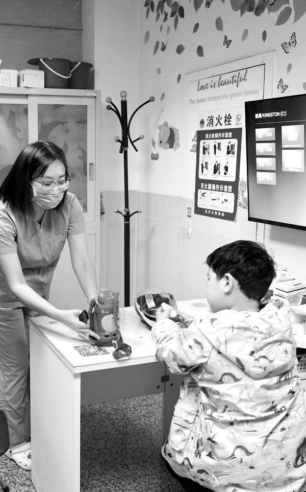 图6:首都医科大学附属北京儿童医院药学部药师丁倩为患儿提供用药咨询服务。