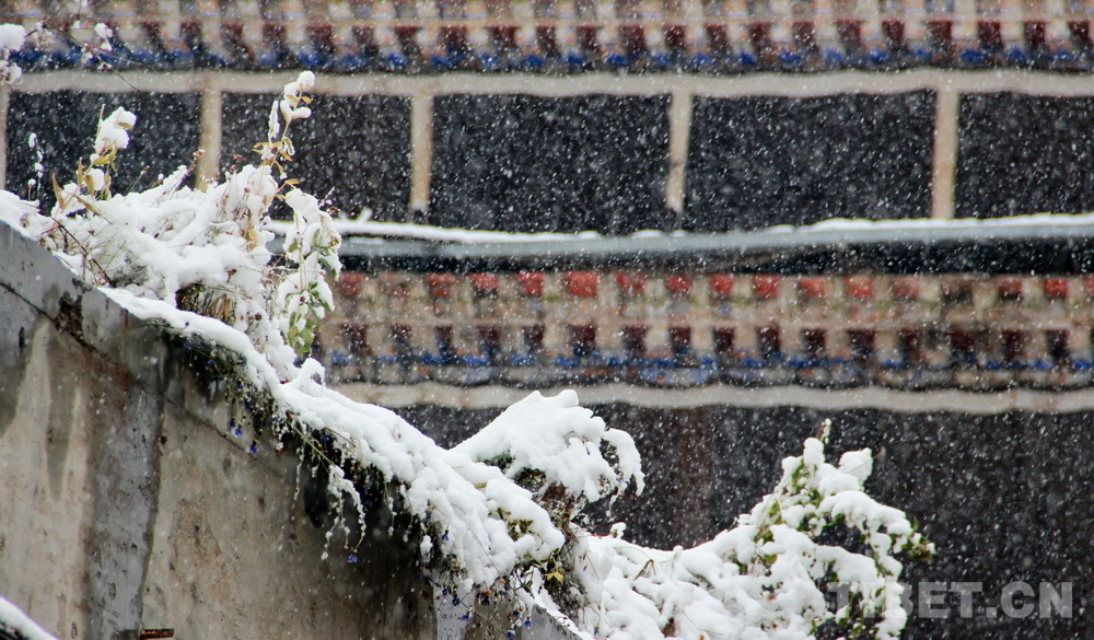 图为在郎木寺义诊点,大雪纷扬,积雪已经压弯了小树 摄影:刘莉