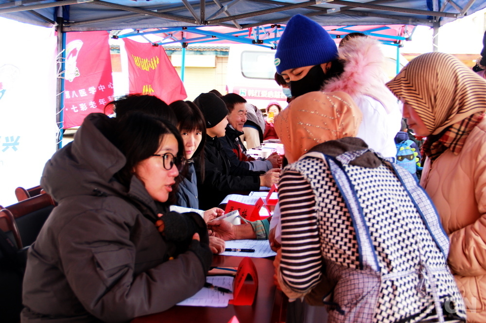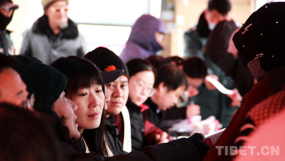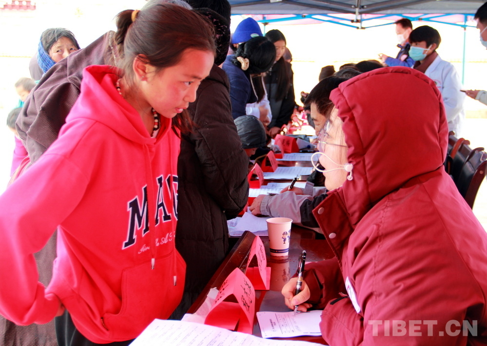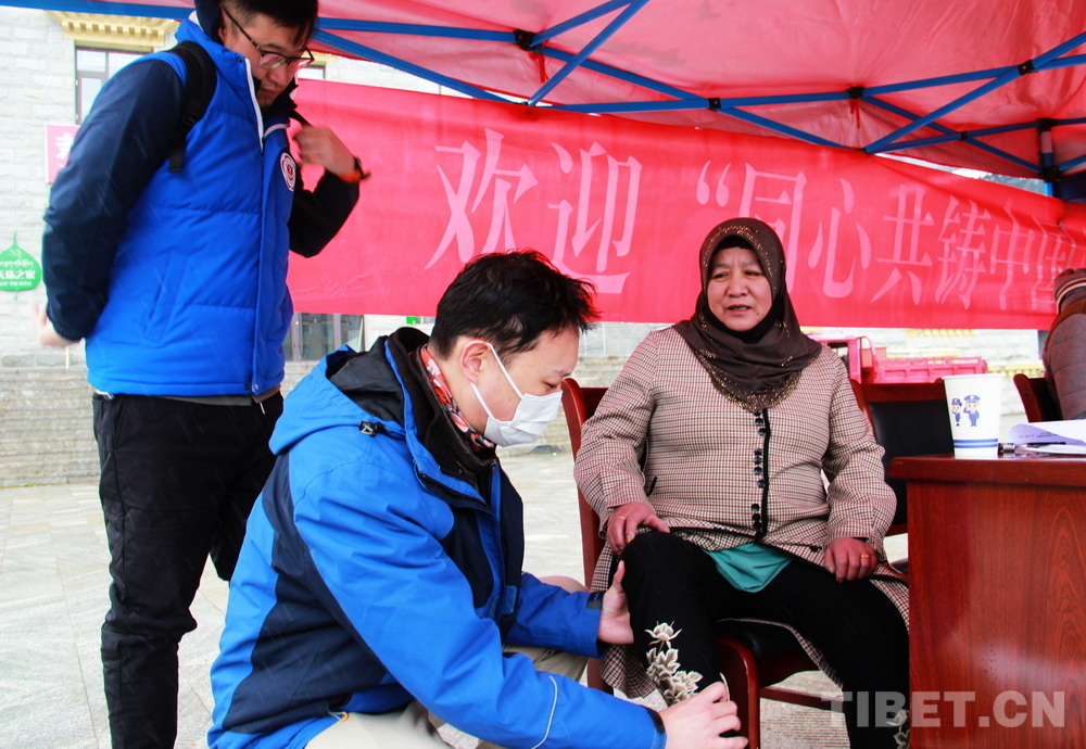 高原的大雪天,在室外即便来回走动也感觉格外寒冷。前来问诊的患者络绎不绝,医务志愿者们坚守岗位,身披雪花,脚踩积雪,在翻译的帮助下不停接诊,一坐就是大半天。有的医务志愿者专心接诊,浑然不知衣服上已经积雪;有的医务志愿者发现患者不太理解疾病的分科,就同时担起了分诊工作;有的医务志愿者自身高反强烈,吸着氧也要坚持接诊……
