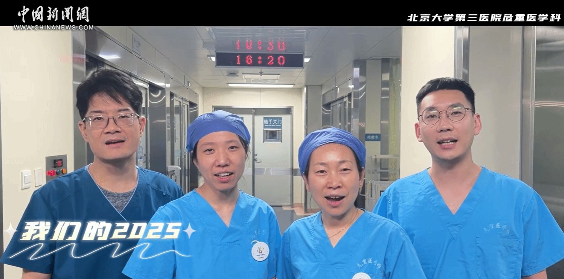 ——【中国新闻网】2025年1月1日,危重医学科李宇轩、乔浡等4人代表医务人员送祝福。