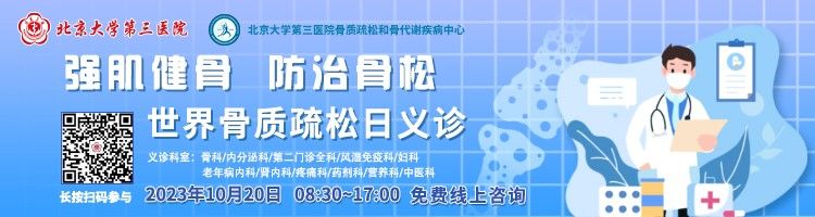 10月20日是国际骨质疏松日,今年的骨质疏松日的主题是“强肌健骨 防治骨松”。为了进一步加强大众对骨质疏松症疾病的认识,北医三院骨质疏松和骨代谢疾病中心多学科团队定于国际骨质疏松日这天开展线上义诊活动。本次多学科义诊集合了11个科室,21名专家,通过北医三院互联网医院“北医三院”APP,为百姓提供线上免费咨询服务。