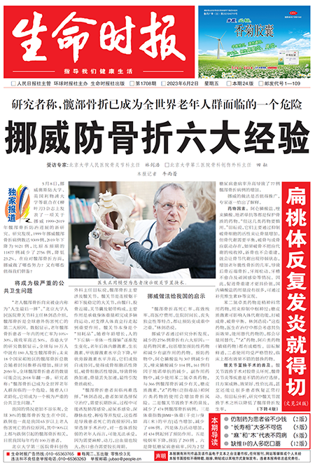 ——《生命时报》5月30日第1、2版,骨科田耘医生科普髋关节骨折相关知识。