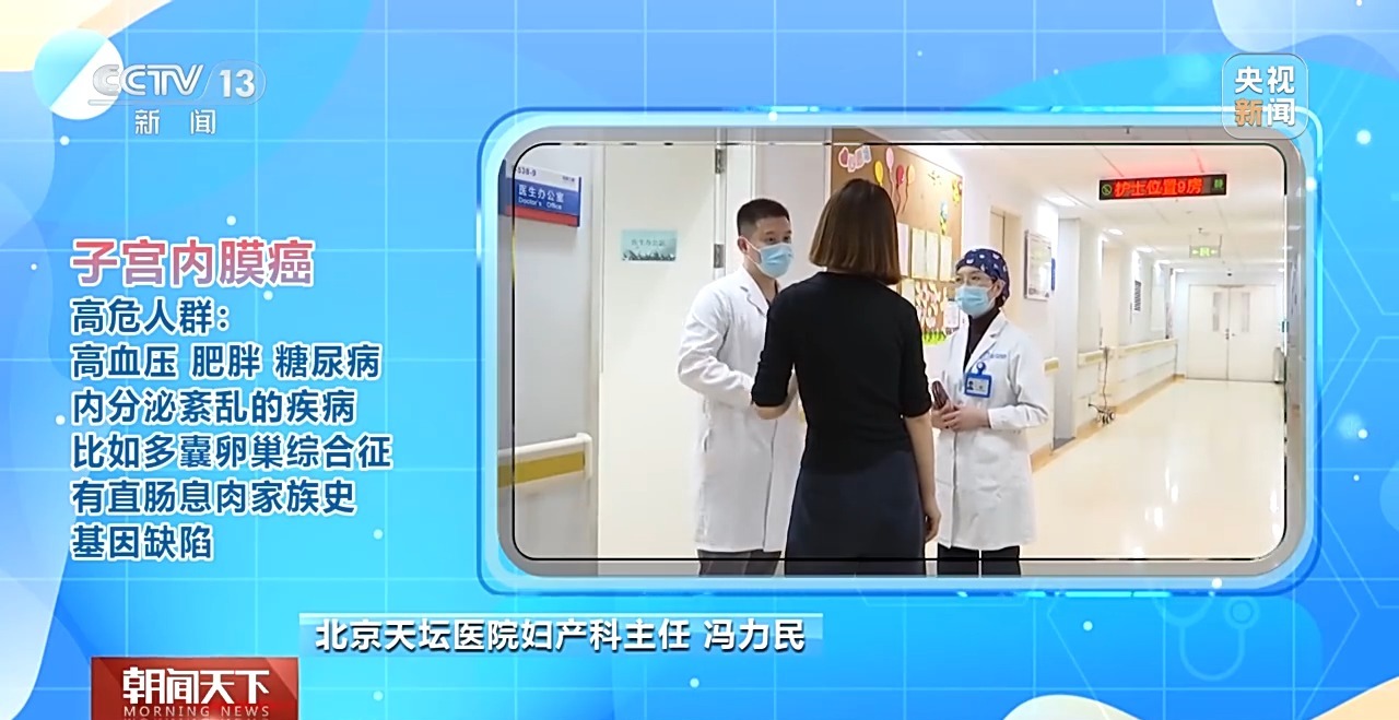 北京天坛医院妇产科主任 冯力民:高血压、肥胖、糖尿病,还有内分泌紊乱的疾病,比如多囊卵巢综合征,还有直肠息肉家族史的病人,有些基因缺陷的病人也是内膜癌的高危患者。 高危人群如何筛查?