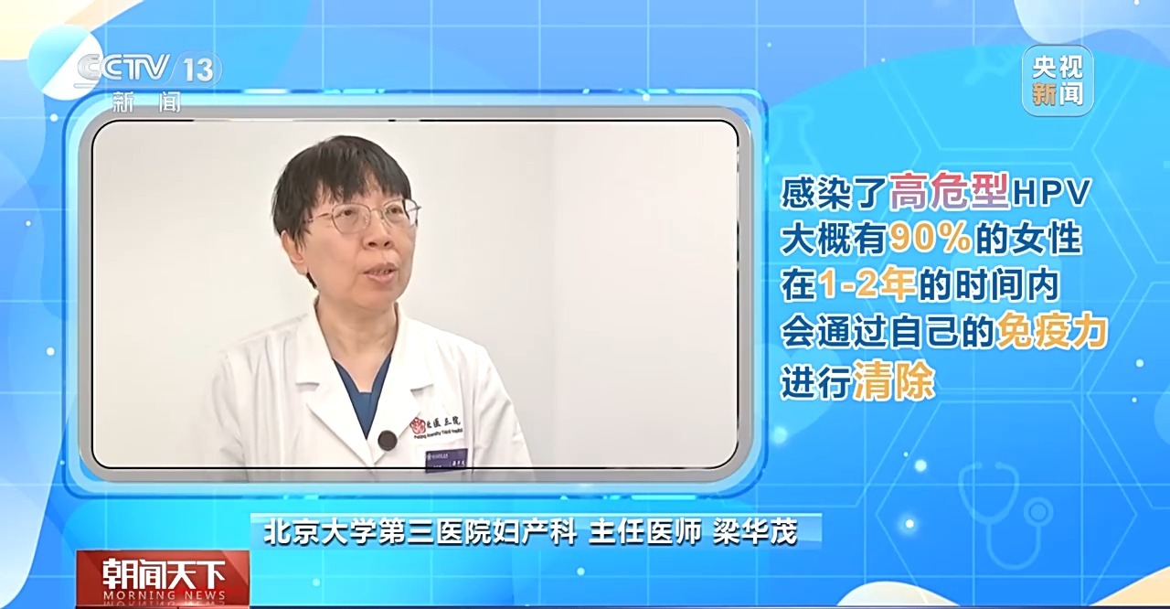 北京大学第三医院妇产科主任医师 梁华茂:其实,性活跃的女性,一生中有80%左右的概率会感染一种或者多种类型的HPV,即使感染了高危型,大概有90%的女性在1—2年的时间内会通过自己的免疫力进行清除,保留下来的高危型HPV,如果持续感染才会导致宫颈病变甚至宫颈癌的发生。