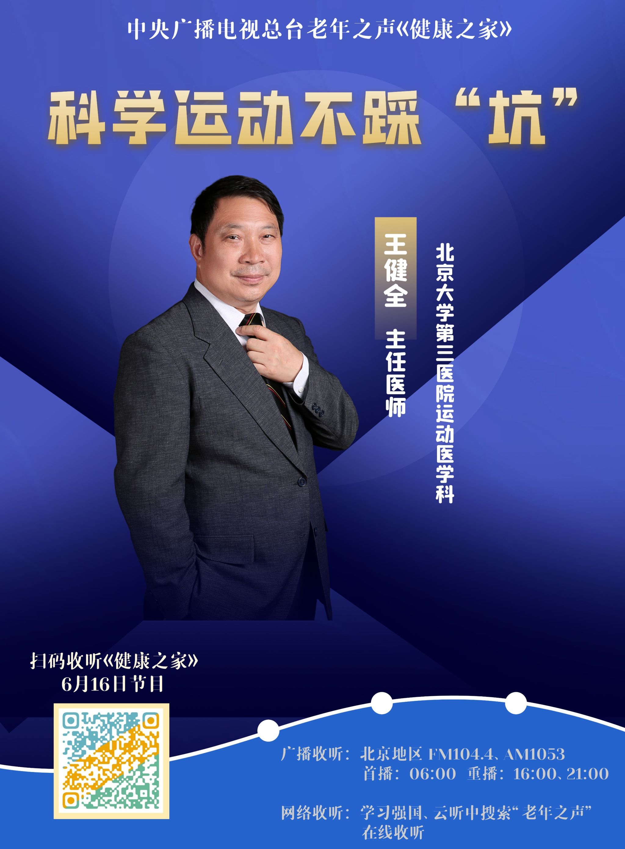 ——【中央广播电视总台】老年之声6月16日,运动医学科王健全医生科普科学运动相关知识。