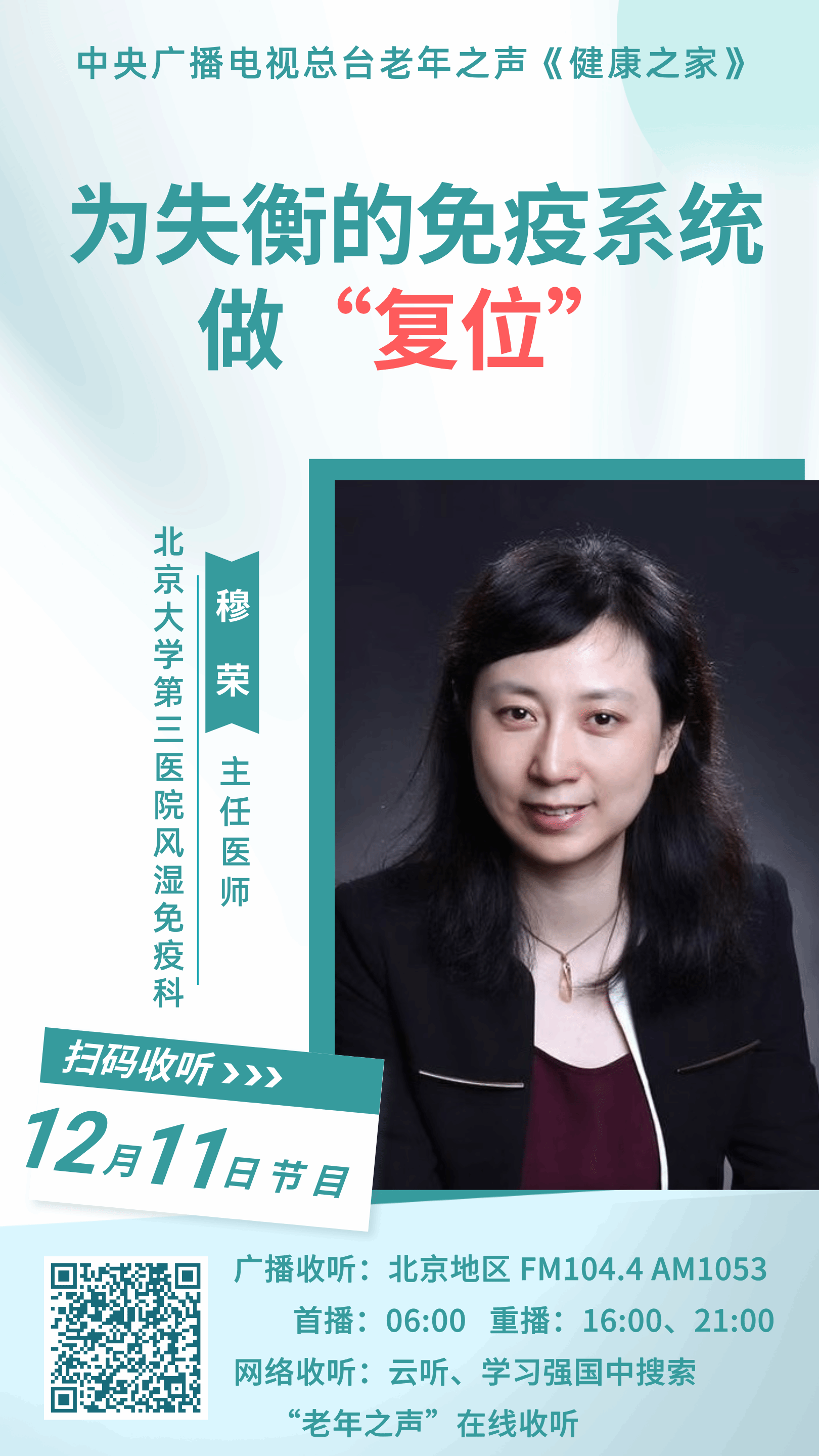 【中央广播电视总台】老年之声 12 月 11 日,风湿免疫科穆荣医生科普免疫力相关知识。