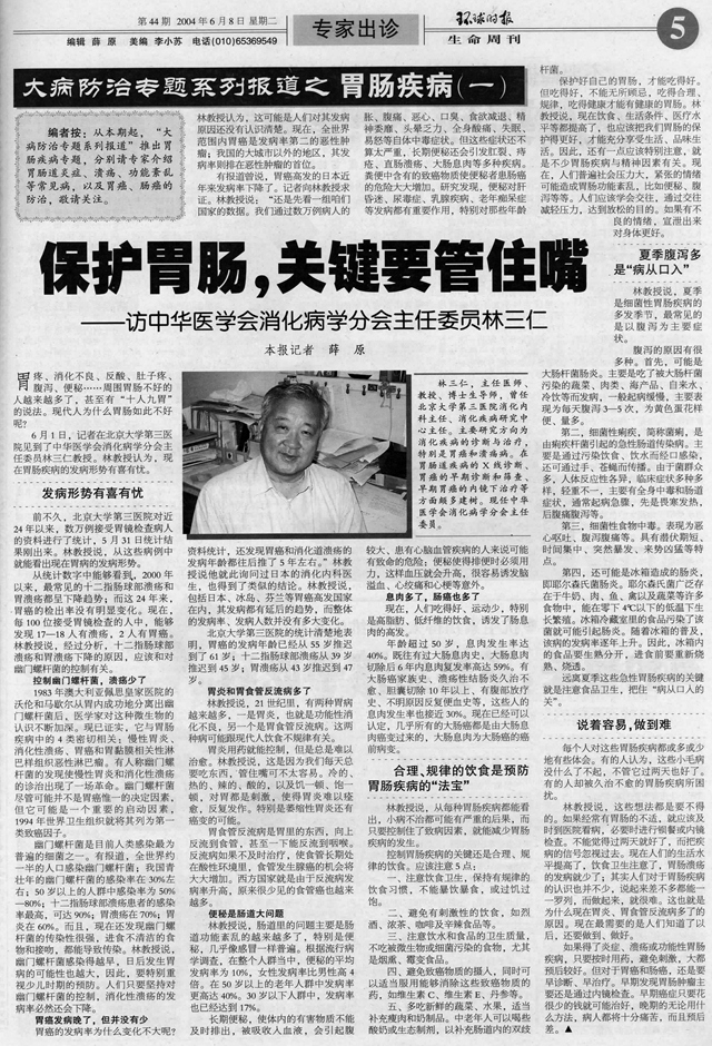 印象中我是2004年开始接受了《生命时报》的采访,这些年,《生命时报》我基本上每期都看,我自己很喜欢这份报纸,健康科普的内容都很专业、严谨、不会夸大其词或者乱说,选题也都贴近百姓,解读最常见的疑问、最需要了解的内容。在百姓心中《生命时报》的威信度还是很高的。我希望未来《生命时报》继续坚持科学、易懂、实用、实际、操作性强等准则,无论是对百姓还是科学都要秉持负责任的态度。坚持正确的舆论导向,多传播正能量,也不回避问题。