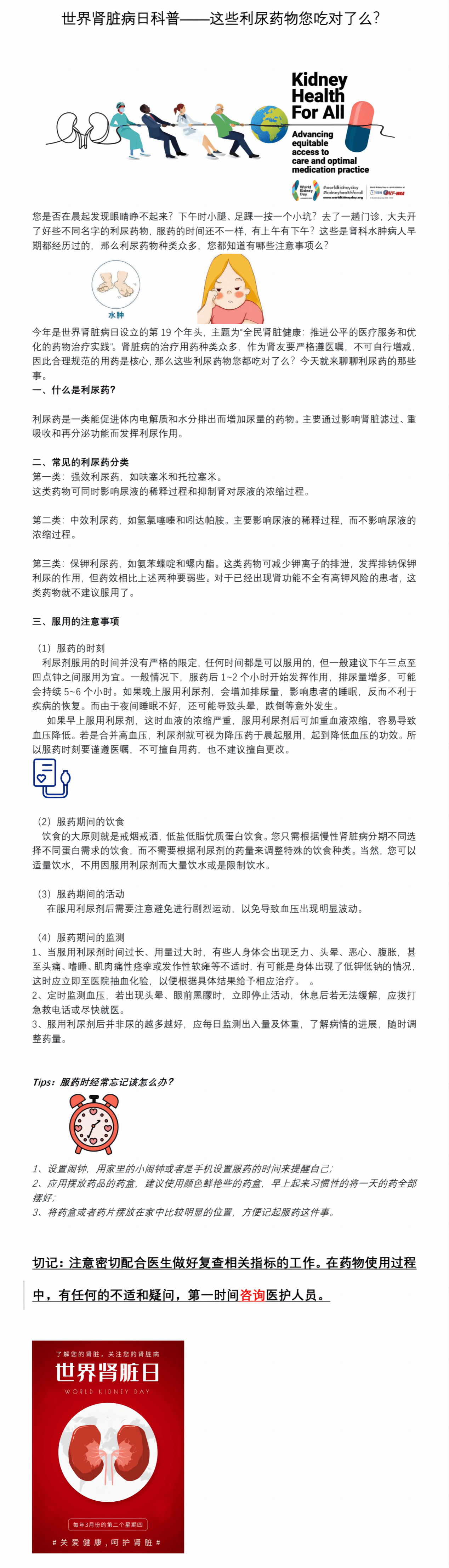 世界肾脏病日科普--这些利尿药物您吃对了么?
