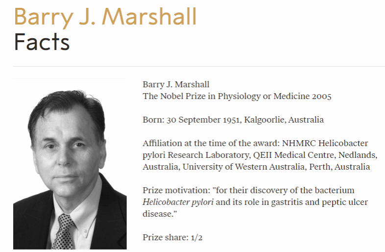 在相当长的一段时期内,科学界普遍秉持这样的观点:在腐蚀性极强的胃部环境中,微生物难以存活。若在这一时期出现胃疼症状,通常会被归因于胃酸分泌过多或精神压力过大。然而,在20世纪80年代初,澳大利亚医生巴里·马歇尔与其搭档罗宾·沃伦通力合作,发现幽门螺旋杆菌才是引发胃炎和胃溃疡的真正根源。2005年,他们因此荣获诺贝尔奖。