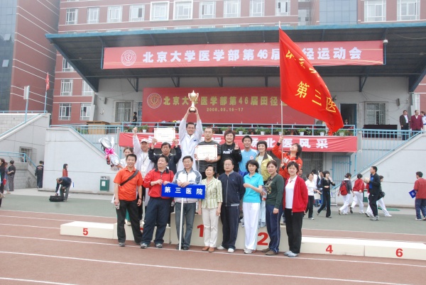 我院在北大医学部运动会上有着骄人的战绩,已连续多年蝉联全体总分第一名。本届运动会选派的运动员均为我院去年秋季运动会各个项目的前4名,可谓阵容之强大。为了保证这些精兵强将参加比赛,全院各科室均给予大力支持,妇产科、眼科、放射科、药剂科、总务处等科室表现尤为突出。在跳绳比赛中,眼科中心运动员的精彩表演和高频率的跳跃赢得了第一,为我院取得优异成绩立下了汗马功劳。