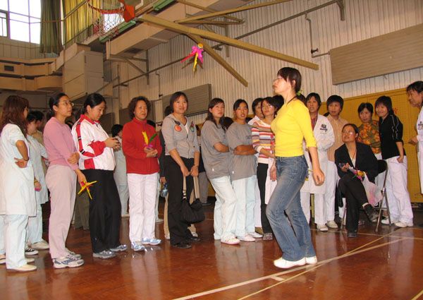 10月14日下午,我院首届职工趣味运动会在医学部体育馆举行。这次经过工会干部职工精心策划筹备的首届职工趣味运动会设置了跳绳、踢毽、飞镖、沙包掷准四个项目,全院有60多个科室、72支队伍报名参赛。陈仲强院长、贺蓓书记等院领导出席了运动会开幕式并参加了比赛项目。