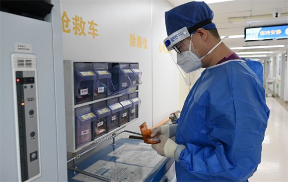之前被各种仪器设备填满小库房,现在已是空空如也。这不得不感谢医学工程处的老师们,在我们需要各种设备的时候,他们都能第一时间提供并调试到位,目前我们科有25台监护仪、6台呼吸机、50余个氧气表、几十台微量泵、输液泵在正常使用中,这些都离不开医学工程处老师们的大力支持。这个点是病房治疗的高峰期,主班老师敲击电脑键盘和鼠标的声音不停、3位责班护士推着治疗车正在快速穿梭在各病室间完成上午的治疗工作。