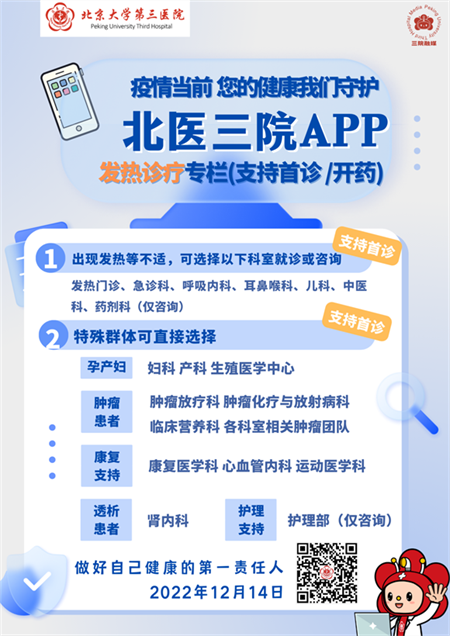 经过研判,医院决定于12月14日在北医三院互联网医院推出“发热诊疗专栏”,同时支持新冠相关症状患者首诊诊疗服务。