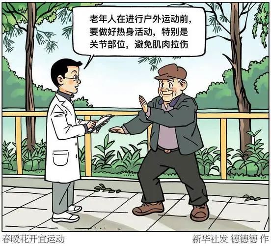 随着春季气温逐渐回暖,正是老年人进行户外活动的好时节。专家提示,适当的户外运动对老年人身心健康大有裨益,但需注意运动方式和强度。 北京大学第三医院运动医学科主任王健全指出,散步是老年人最适合的运动之一。老年人可以选择在公园或河边空气清新的地方散步,每次半小时到一小时,速度和强度可根据个人身体状况自行调整。对于身体状况良好、有一定运动基础的老年人,可以尝试广场舞等中等强度的运动,这不仅能增强心肺功能,促进血液循环,还能缓解日常紧张和焦虑情绪。 老年人在进行户外运动时,也需要注意一些事项。北京医院骨科副主任王强提醒,运动前要做好热身活动,特别是关节部位,避免肌肉拉伤。同时,要注意保暖,根据天气变化适当增添衣物,避免着凉。运动强度不宜过大,如果出现头晕、心慌等症状,应立即停止运动。此外,运动前后要适当补充水分,但不要在运动过程中和运动刚刚结束后大量饮水,以免增加心脏负担。