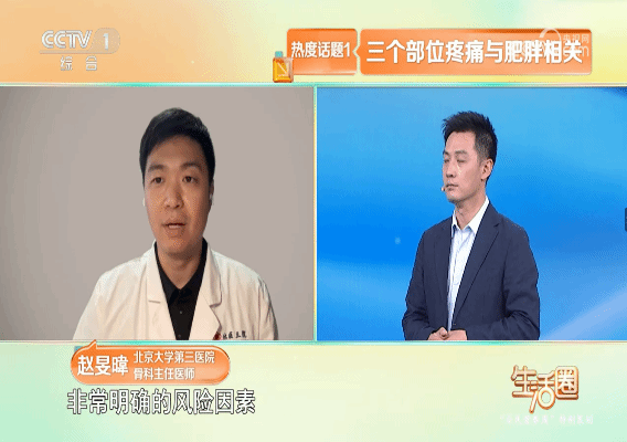 ——【CCTV1】5月22日《生活圈》栏目,近日,北医三院骨科主任医师赵旻暐为大家科普了骨关节炎和肥胖的关系。