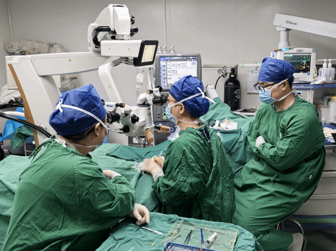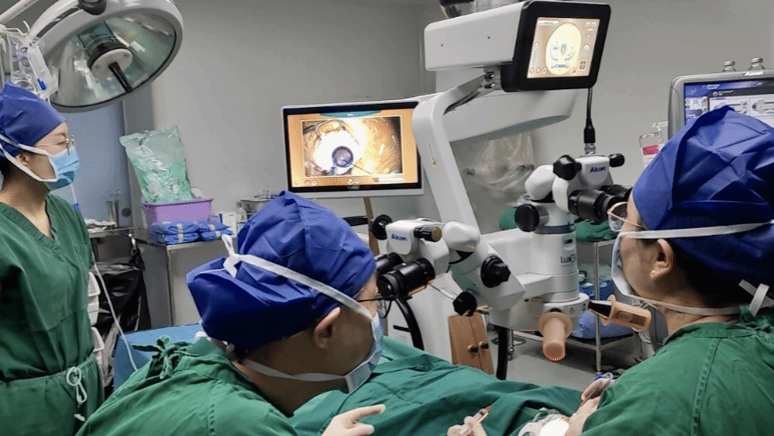 经过充分的术前准备,小欧珠于3月7日接受了手术治疗。范翔主刀,通过一个仅0.4mm的超微创切口,清除病灶,打开小欧珠眼睛的光学通路。手术历时15分钟,顺利完成,并且无需缝合,避免后续再次手术拆线。
