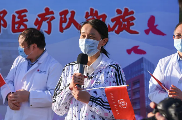 “北医三院全体队员顺利回家了!”这是葛庆岗队长庄重的承诺,医疗队完美的答卷。葛庆岗队长清楚地记得出发的日子,大年初二,2020年1月26日,他立下军令状,带着第一批队员奔赴前线。从那一刻起,作为危重医学科专家,他不仅担负着繁重的医疗任务,更要承担沉甸甸的队长责任。作为医疗队队长,对于这样一只英雄队伍,他满怀豪情地说:“我们是北医三院,我们责无旁贷。我们经历了生死考验;经历了病情波动的彻夜难眠;经历了治愈的欣慰;我们为至真至纯的医者情怀拼过命;我们,将北医三院人的精神永远留在了武汉。”