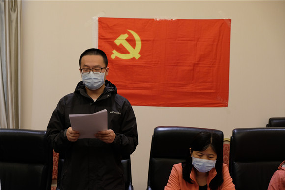 2月25日下午北京大学第三医院国家援鄂抗疫医疗队第4临时党支部接收预备党员大会隆重召开,接收我为预备党员。这是我人生中参加过的最严肃、最庄重、最特殊的会议,这一时刻,永生难忘。会中,袁晓宁书记和李超、吴超两位入党介绍人对我的肯定与鼓励,我牢记在心;乔杰院长带领我宣读的入党誓词时刻环绕在我耳边。这些都时刻提醒我,这是我人生道路上的新起点,要不忘初心,牢记使命!