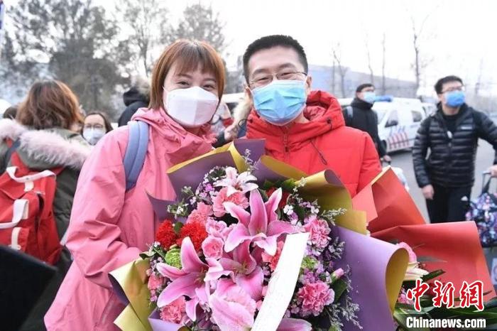 北医三院放疗科护士马骏作为首批援鄂抗疫国家医疗队队员,在出征前与送行的丈夫合影。