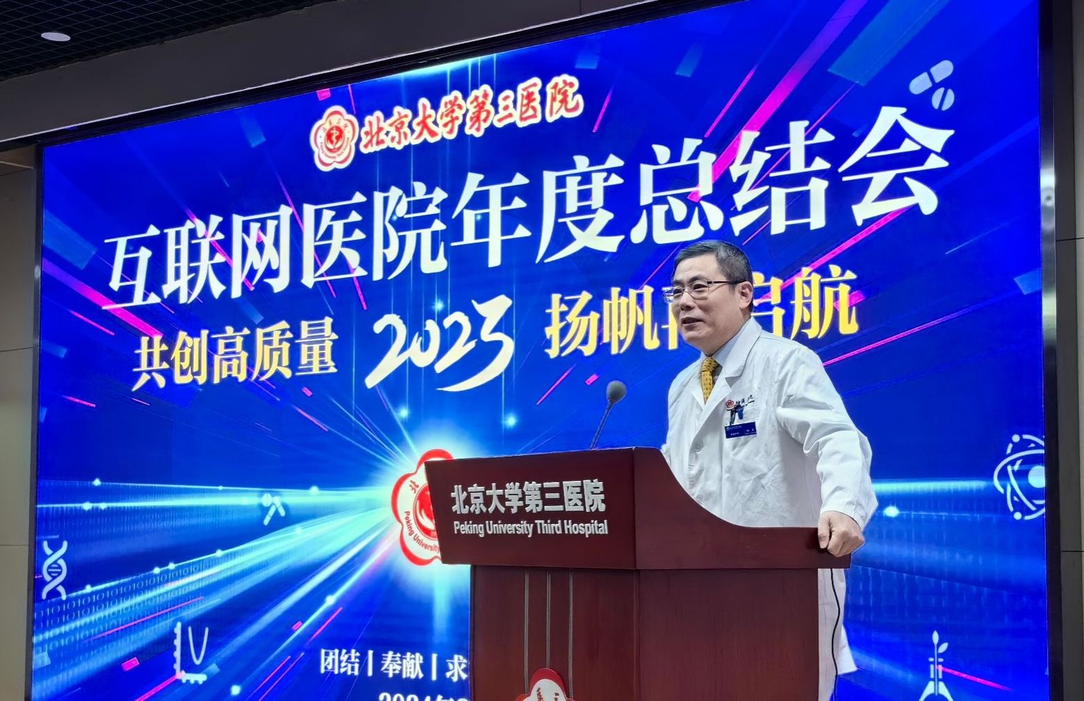 付卫院长在总结讲话时对获得表彰的科室和人员表示热烈祝贺。他指出,北医三院互联网医院取得的成绩,来源于全院各临床医技科室对互联网医疗工作的高度重视和持续努力。互联网医院从无到有,从有到优,背后也是信息管理与大数据中心、互联网医院办公室、门诊部等职能处室夜以继日不断协同努力的成果。付卫院长就互联网医院未来的发展提出殷切期望。他希望互联网医院年度总结会能够不断丰富形式,加大对优秀科室和个人的奖励力度,激励奋进与再开拓;各科室要充分利用互联网医院的平台优势,不断优化诊疗流程,提升患者的就医体验,将互联网医院打造成医院管理创新的“名片”,为医院可持续发展注入新的活力。
