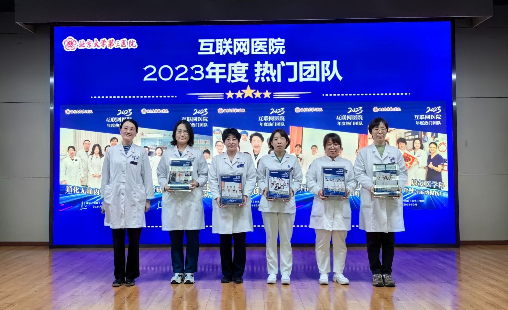 消化无痛内镜评估团队(消化科)、肾病与透析护理团队(护理部)、生殖妇科微创外科团队(生殖医学科)、妇科内分泌全面管理团队(妇科)、康复团队一骨科与运动损伤团队(康复医学科),被评为2023年度互联网医院“热门团队”。
