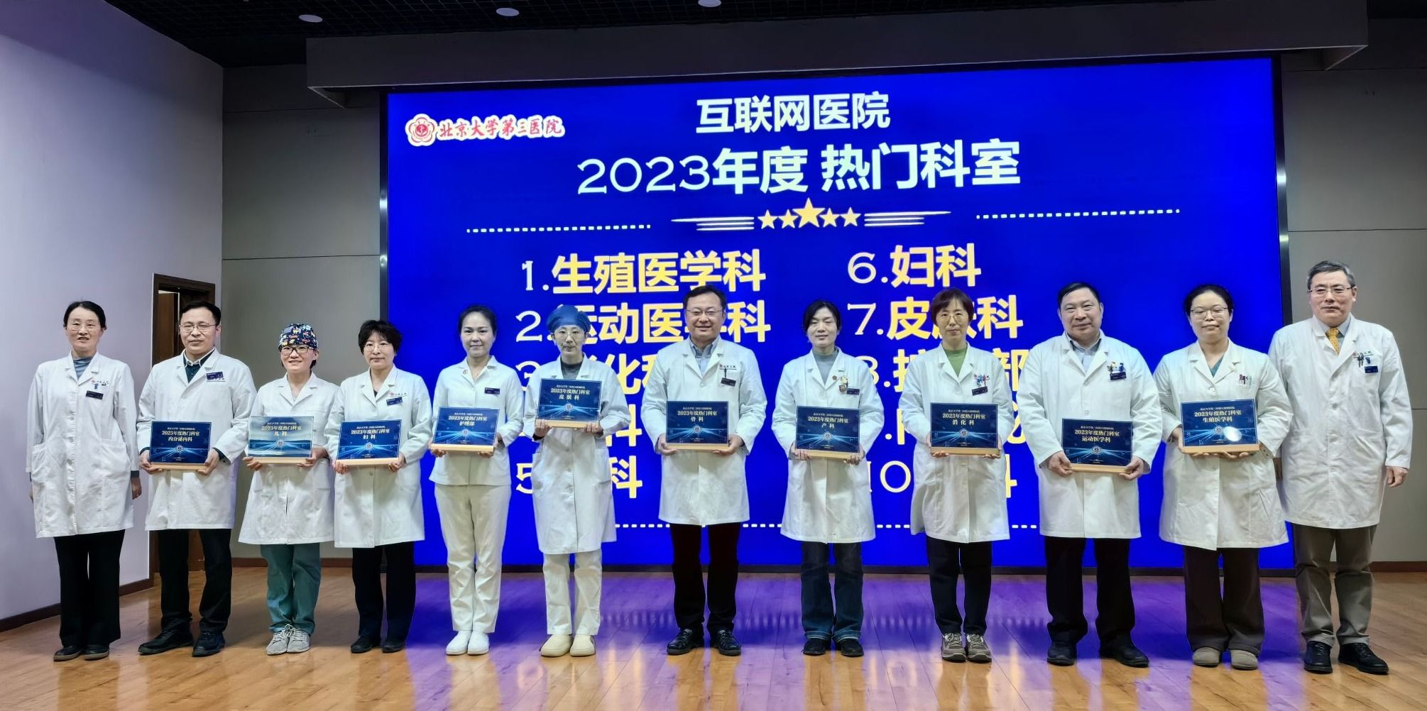 生殖医学科、运动医学科、消化科、产科、骨科、妇科、皮肤科、护理部、内分泌科、儿科入选2023年度互联网医院“热门科室”。